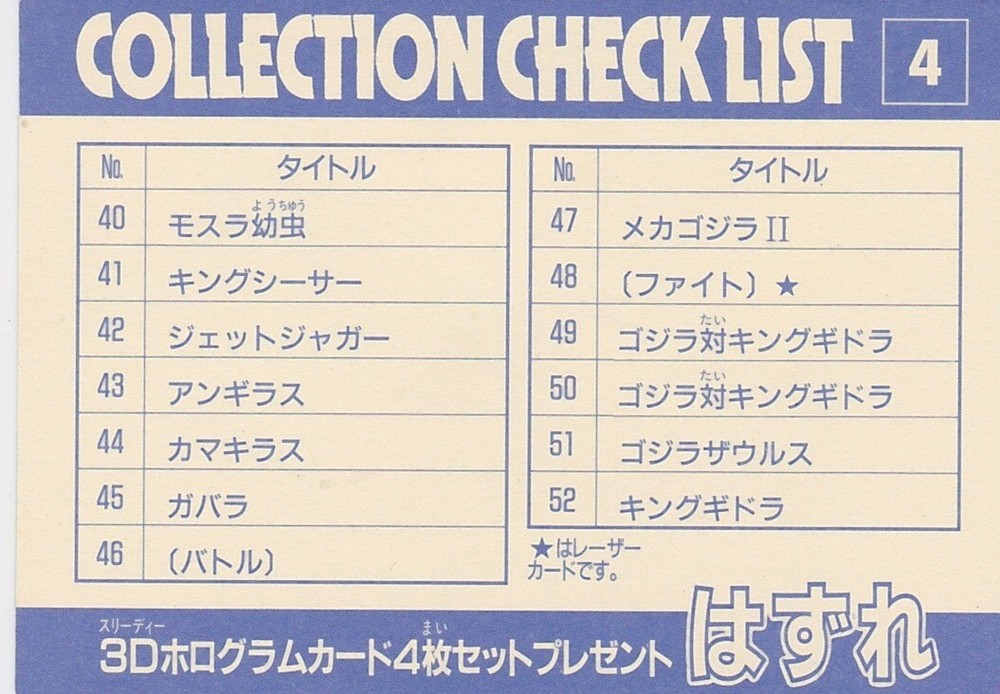 1995 GODZILLA JPP AMADA TRADING CARD CHECKLIST #4 Godzilla vs Destroyah CARD CONDITION: EX PRODUCED BY JPP AMADA