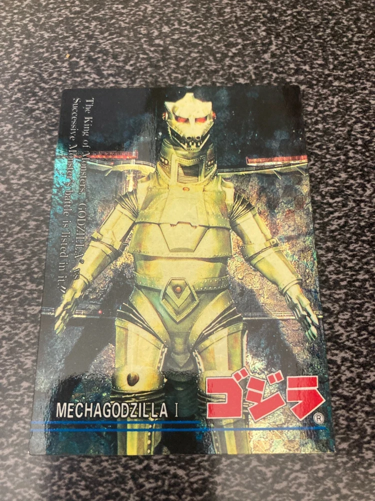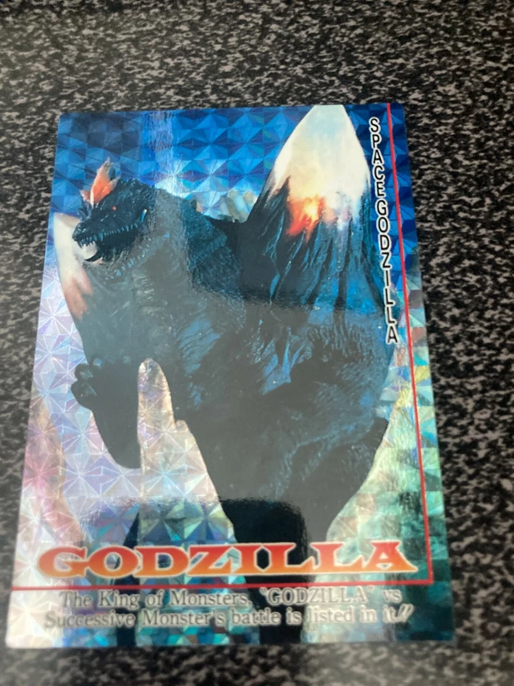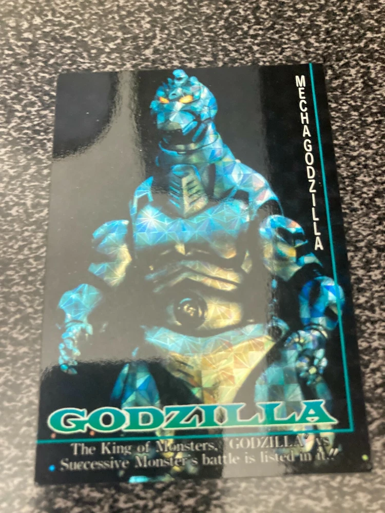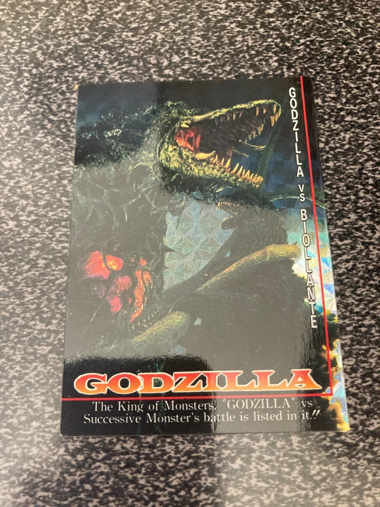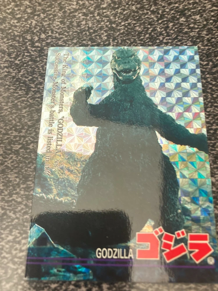 THIS SALE IS FOR THE 1995 GODZILLA PRISM-REFRACTOR CARDS. THESE CARDS ARE PART OF THE SET. IT IS IN JAPANESE. THESE CARDS WERE PULLED FROM THE PACKS. THERE ARE DUPLICATES (3). EACH CARD IS $10.00. PLEASE SEND ME YOUR CARD NUMBER(S) UPON PURCHASE. SHIPPING IS ONLY $4.50. 21-GODZILLA (3) 23-GODZILLA vs BIOLLANTE (6) 26-MECHAGODZILLA (5) 35-GODZILLA (3) 70-MECHAGODZILLA (4) 81-SPACEGODZILLA (5) 99-GODZILLA (3) THIS ITEM WILL BE SHIPPED IN A BUBBLE WRAPPED ENVELOPE, FIRST CLASS. I DO COMBINE SHIPPING WITH OTHER AUCTIONS. PLEASE OUT MY OTHER GODZILLA AUCTIONS.