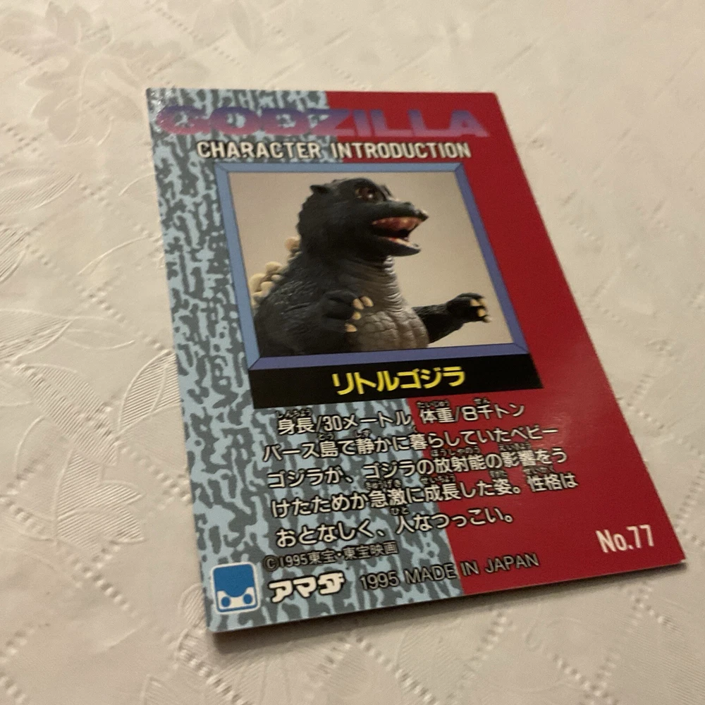Up for sale is a rare and highly sought-after trading card from the 1995 Godzilla Collection. This particular card, numbered #77, features a checklist and belongs to the Non-Sport Trading Card type. The card is manufactured in Japan and is in very good condition. Fans of the Godzilla franchise will definitely want to add this card to their collection.