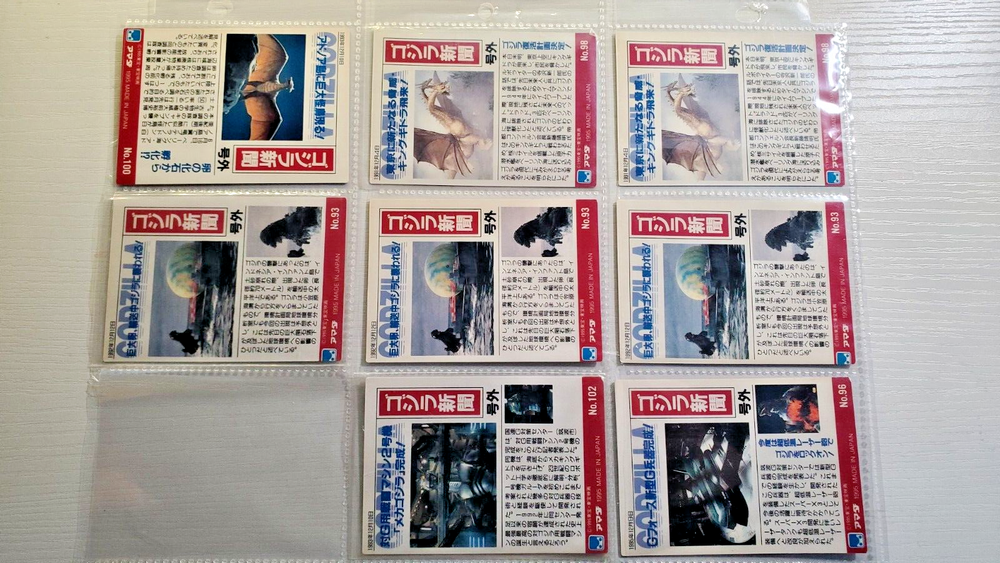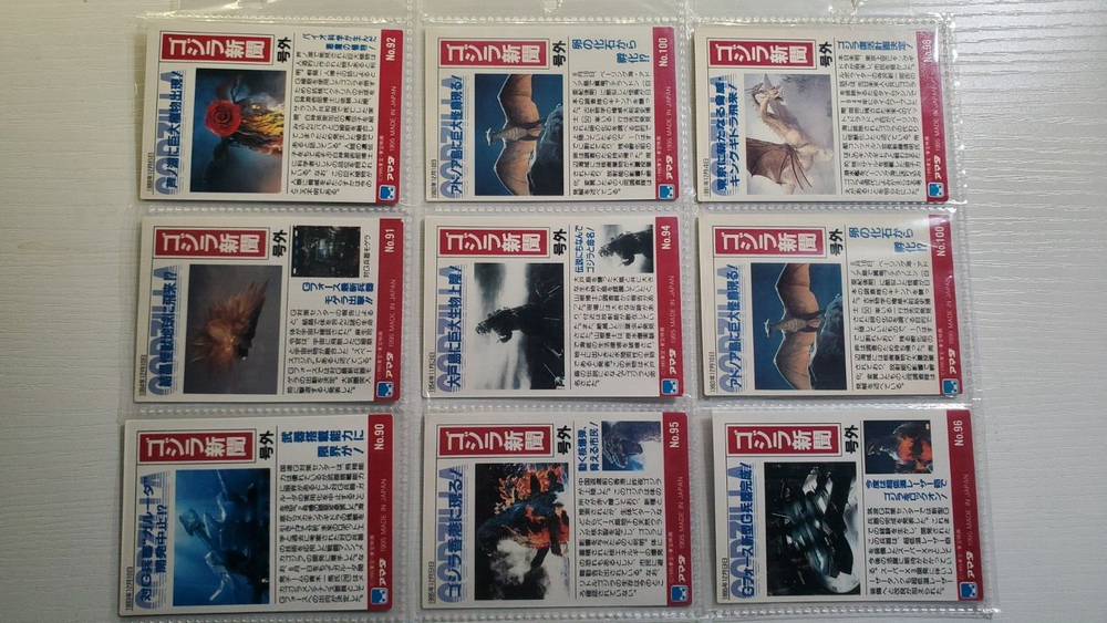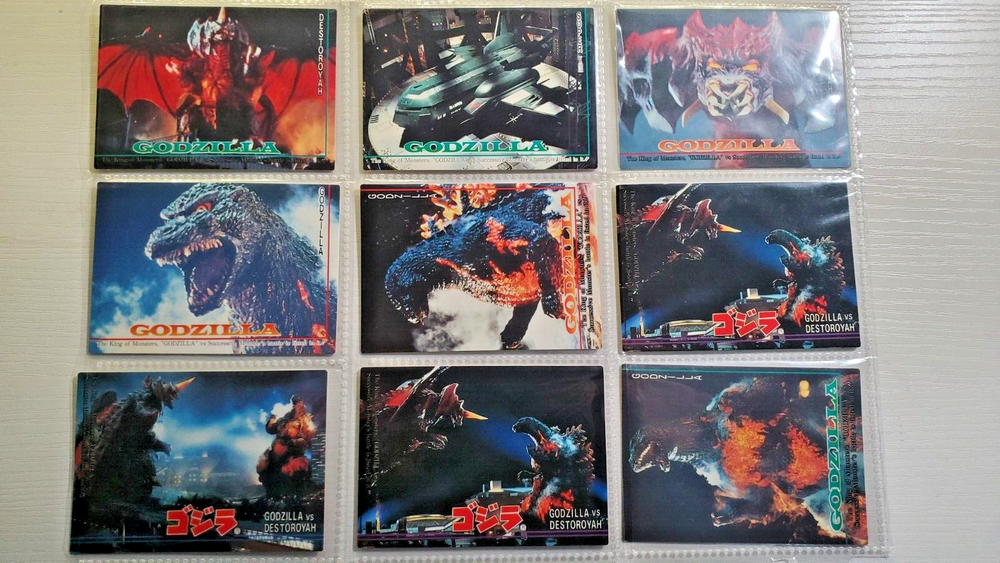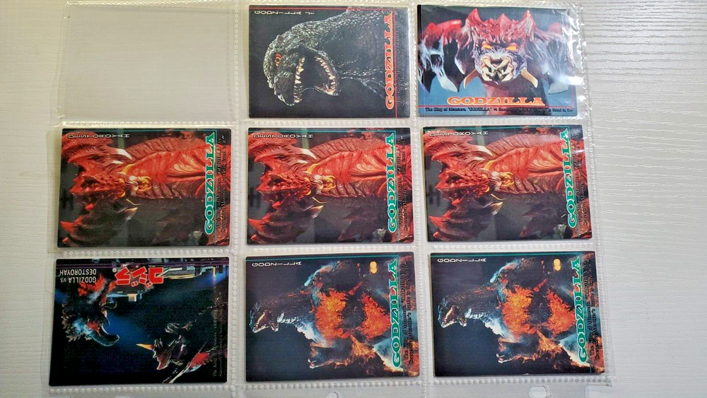 This is a lot of 17 trading cards featuring Godzilla, released in 1995 by the brand Amada in Japan. The cards are themed around Godzilla and are suitable for ages 4 and up. They are collectible cards related to monsters and come from the category of robots, monsters, and space toys.