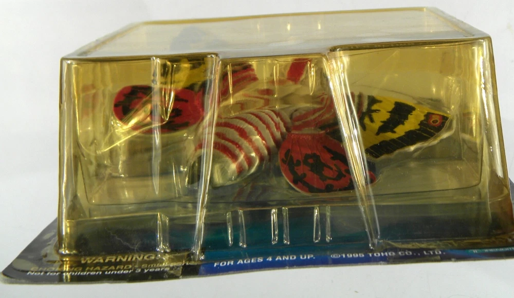 You are bidding on a super rare 1995 Trendmasters Mothra Figure mint in a lightly creased factory sealed package. Blister is yellow and is dent free! Never removed from box See picture for details. Winning bidder pays $14.00 shipping via USPS. International bidders are welcome but shipping may be more based on the country in which you live. We accept Paypal. We also combine shipping, so check our other auctions and our eBay Store for more items! Good luck!