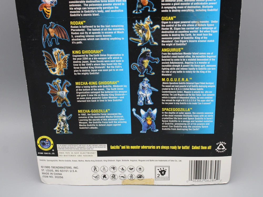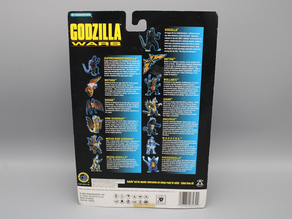 This is a new old stock 1995 Trendmasters Godzilla Wars SpaceGodzilla Action Figure with Bonus Card. Please see our photos for more details, and feel free to ask any questions you may have before making your purchase.