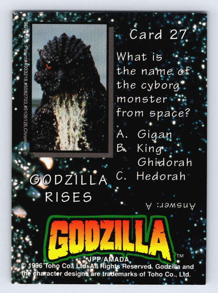 This 1996 AMADA TOHO Godzilla TCG trading card has visible signs wear from age and handling. ------------------------ 1. Payment is due within 4 days of purchase. 2. Payment by PayPal E-Check will have to wait until it has cleared before shipping. This can take 5-7 for PayPal E-Check. 3. Please make any shipping requests prior to purchase. I will do my best to accommodate any shipping instructions. -------------------------- 1. Please view the shipping and payments tab for shipping rates outside the United States. 2. I will combine shipping on multiple item purchases! 3. Please make any shipping requests prior to purchase. I will do my best to accommodate any shipping instructions. -------------------------- All items are sold AS-IS in the description and as pictured. Stock photos are never used, only REAL photos! If you have any questions or concerns, please ask them before purchasing. All questions are answered as quickly as possible! Please read the listing carefully.