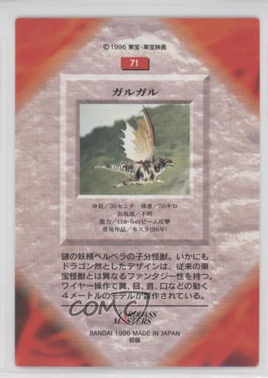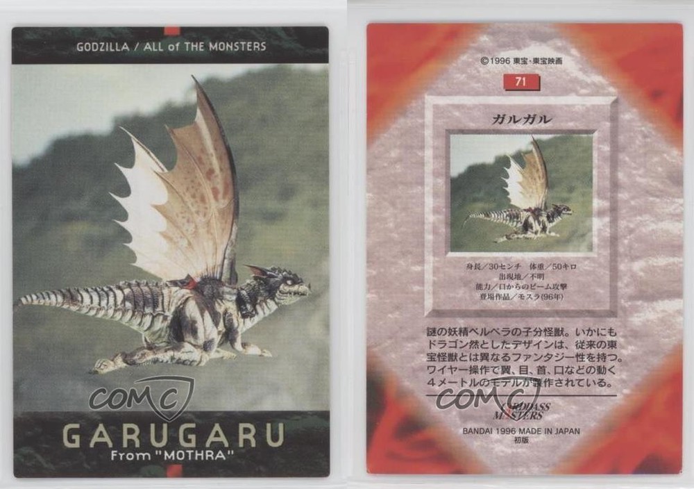 1996 Bandai Carddass Godzilla All of The Monsters - [Base] #71 Garugaru COMC Item: 112966845 - Non-Sports Card Search for more: 1996 Bandai Carddass Godzilla All of The Monsters Search for more: 1996 Bandai Carddass Godzilla All of The Monsters - [Base] View all of our Listings Auctions Buy It Now About Us Located in the beautiful Pacific Northwest, COMC (Check Out My Cards) is the world's largest consignment service for trading card singles. More than 10,000 people have used our consignment service to list over 50 million trading cards. Find out how we can help you consign your items on eBay by contacting us through eBay messaging. COMC -- "The Safe & Easy Way to Buy & Sell" Raw Condition for Modern Cards Unless otherwise noted, raw modern cards are listed in Near Mint-Mint condition or better. A NM-MT card appears to be Mint at first glance, but upon closer inspection, may exhibit some of the following: minor print defects (e.g. roller marks, print line, dimple), minor scratches, slight edge wear, and slight corner wear. Centering is clearly visible in the images provided and does not factor into our condition assessment. Raw Condition for Vintage Cards Unless otherwise noted, raw vintage cards are listed in Excellent condition or better. An EX card may exhibit some of the following: minor rounding of corners, surface wear, print defects, light scratches, and slight edge wear/chipping. Centering is clearly visible in the images provided and does not factor into our condition assessment. Domestic Shipping Combined shipping for multiple items is available. To receive combined shipping, please ensure all desired items are in your eBay shopping cart before proceeding to checkout. eBay limits orders to 40 items per order. We automatically combine multiple orders placed on the same day. If you place multiple orders on the same day, please contact us to request a refund of applicable shipping costs. Signature confirmation may be required on invoices over $400. All cards are protected and shipped securely. International Shipping COMC offers eBay's International Shipping (EIS) for international orders under $2,500* (see country exceptions below). All duties and import fees are paid at checkout; in the rare event that there are additional import fees upon delivery, these are borne by the buyer. EIS packages route through a shipping hub in Erlanger, KY before shipping to their final destination. Please note that EIS does not allow for combined shipments. The shipping rates are determined by eBay and cannot be adjusted. *Maximum sale price exceptions: Colombia, Kuwait ($2,000); Taiwan ($1,539); Chile, Costa Rica, Guatemala, Honduras, Trinidad and Tobago ($1,000); Antigua and Barbuda, Aruba, Belize, Dominica, Grenada, Philippines, Saint Kitts and Nevis, Saint Lucia, Montserrat, Turks and Caicos Islands ($500); Dominican Republic, El Salvador ($200). Please request a shipping quote through eBay messaging for orders that exceed the maximum sale price supported by eBay's International Shipping. You will be responsible for all duties and import fees for international orders shipped outside the EIS. All cards are protected and shipped securely. Payment COMC does not accept offers on our cards through our eBay storefront. COMC utilizes eBay’s managed payments system. If you are experiencing difficulties making a payment, please contact eBay for assistance. Return Policy Returns are only accepted on the rare occasion the item is not as described. If you are making a return, please initiate the return process through eBay so a mailing label can be provided for you. Prior to listing, our expert team carefully assessed this item to represent it accurately. Please review the description and high-definition images prior to purchasing to ensure this item meets your satisfaction. We welcome you to contact us if you have further questions about this item. Trust and Integrity COMC carefully assesses each item consigned to us to prevent fraudulent items from entering the marketplace. If you believe an item offered on COMC may be fraudulent, please contact us with details so we can investigate the issue. Items we determine are outside our supported items policy may be removed. Last Modified: 6/11/2025 12:46:39 PM PDT