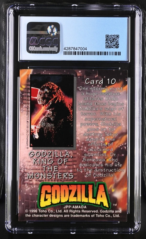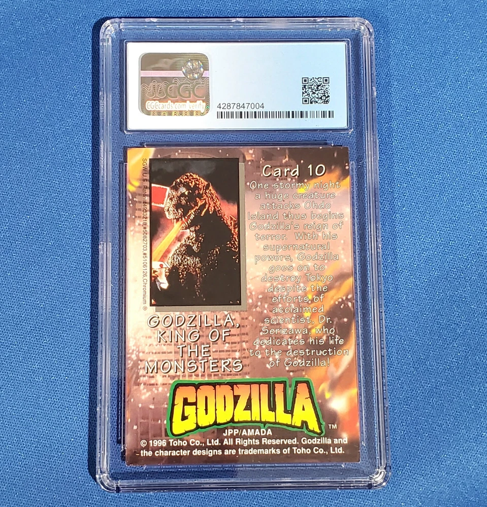 JPP/AMADA Godzilla Chromium #10 Godzilla: King of the Monsters CGC GRADED 8 - NM/MINT Card in pictures is the exact card you will receive. slab stored double sleeved and will ship very well protected, and IN A BOX to ensure no damage in transit