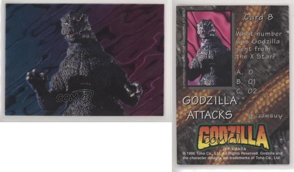 1996 JPP/Amada Godzilla Chromium - [Base] #8 Godzilla Attacks COMC Item: 86880620 - Non-Sports Card - Featuring Godzilla Search for more: 1996 JPP/Amada Godzilla Chromium Search for more: 1996 JPP/Amada Godzilla Chromium - [Base] View all of our Listings Auctions Buy It Now About Us Located in the beautiful Pacific Northwest, COMC (Check Out My Cards) is the world's largest consignment service for trading card singles. More than 10,000 people have used our consignment service to list over 50 million trading cards. Find out how we can help you consign your items on eBay by contacting us through eBay messaging. COMC -- "The Safe & Easy Way to Buy & Sell" Raw Condition for Modern Cards Unless otherwise noted, raw modern cards are listed in Near Mint-Mint condition or better. A NM-MT card appears to be Mint at first glance, but upon closer inspection, may exhibit some of the following: minor print defects (e.g. roller marks, print line, dimple), minor scratches, slight edge wear, and slight corner wear. Centering is clearly visible in the images provided and does not factor into our condition assessment. Raw Condition for Vintage Cards Unless otherwise noted, raw vintage cards are listed in Excellent condition or better. An EX card may exhibit some of the following: minor rounding of corners, surface wear, print defects, light scratches, and slight edge wear/chipping. Centering is clearly visible in the images provided and does not factor into our condition assessment. Domestic Shipping Combined shipping for multiple items is available. To receive combined shipping, please ensure all desired items are in your eBay shopping cart before proceeding to checkout. eBay limits orders to 40 items per order. We automatically combine multiple orders placed on the same day. If you place multiple orders on the same day, please contact us to request a refund of applicable shipping costs. Signature confirmation may be required on invoices over $400. All cards are protected and shipped securely. International Shipping COMC offers eBay's International Shipping (EIS) for international orders under $2,500* (see country exceptions below). All duties and import fees are paid at checkout; in the rare event that there are additional import fees upon delivery, these are borne by the buyer. EIS packages route through a shipping hub in Erlanger, KY before shipping to their final destination. Please note that EIS does not allow for combined shipments. The shipping rates are determined by eBay and cannot be adjusted. *Maximum sale price exceptions: Colombia, Kuwait ($2,000); Taiwan ($1,539); Chile, Costa Rica, Guatemala, Honduras, Trinidad and Tobago ($1,000); Antigua and Barbuda, Aruba, Belize, Dominica, Grenada, Philippines, Saint Kitts and Nevis, Saint Lucia, Montserrat, Turks and Caicos Islands ($500); Dominican Republic, El Salvador ($200). Please request a shipping quote through eBay messaging for orders that exceed the maximum sale price supported by eBay's International Shipping. You will be responsible for all duties and import fees for international orders shipped outside the EIS. All cards are protected and shipped securely. Payment COMC does not accept offers on our cards through our eBay storefront. COMC utilizes eBay’s managed payments system. If you are experiencing difficulties making a payment, please contact eBay for assistance. Return Policy Returns are only accepted on the rare occasion the item is not as described. If you are making a return, please initiate the return process through eBay so a mailing label can be provided for you. Prior to listing, our expert team carefully assessed this item to represent it accurately. Please review the description and high-definition images prior to purchasing to ensure this item meets your satisfaction. We welcome you to contact us if you have further questions about this item. Trust and Integrity COMC carefully assesses each item consigned to us to prevent fraudulent items from entering the marketplace. If you believe an item offered on COMC may be fraudulent, please contact us with details so we can investigate the issue. Items we determine are outside our supported items policy may be removed. Last Modified: 7/15/2025 4:54:00 AM PDT