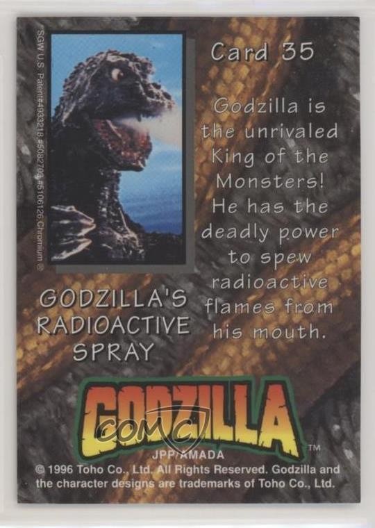 1996 JPP/Amada Godzilla Chromium - [Base] #35 Godzilla's Radioactive Spray COMC Item: 86880628 - Non-Sports Card Search for more: 1996 JPP/Amada Godzilla Chromium Search for more: 1996 JPP/Amada Godzilla Chromium - [Base] View all of our Listings Auctions Buy It Now About Us Located in the beautiful Pacific Northwest, COMC (Check Out My Cards) is the world's largest consignment service for trading card singles. More than 10,000 people have used our consignment service to list over 50 million trading cards. Find out how we can help you consign your items on eBay by contacting us through eBay messaging. COMC -- "The Safe & Easy Way to Buy & Sell" Raw Condition for Modern Cards Unless otherwise noted, raw modern cards are listed in Near Mint-Mint condition or better. A NM-MT card appears to be Mint at first glance, but upon closer inspection, may exhibit some of the following: minor print defects (e.g. roller marks, print line, dimple), minor scratches, slight edge wear, and slight corner wear. Centering is clearly visible in the images provided and does not factor into our condition assessment. Raw Condition for Vintage Cards Unless otherwise noted, raw vintage cards are listed in Excellent condition or better. An EX card may exhibit some of the following: minor rounding of corners, surface wear, print defects, light scratches, and slight edge wear/chipping. Centering is clearly visible in the images provided and does not factor into our condition assessment. Domestic Shipping Combined shipping for multiple items is available. To receive combined shipping, please ensure all desired items are in your eBay shopping cart before proceeding to checkout. eBay limits orders to 40 items per order. We automatically combine multiple orders placed on the same day. If you place multiple orders on the same day, please contact us to request a refund of applicable shipping costs. Signature confirmation may be required on invoices over $400. All cards are protected and shipped securely. International Shipping COMC offers eBay's International Shipping (EIS) for international orders under $2,500* (see country exceptions below). All duties and import fees are paid at checkout; in the rare event that there are additional import fees upon delivery, these are borne by the buyer. EIS packages route through a shipping hub in Erlanger, KY before shipping to their final destination. Please note that EIS does not allow for combined shipments. The shipping rates are determined by eBay and cannot be adjusted. *Maximum sale price exceptions: Colombia, Kuwait ($2,000); Taiwan ($1,539); Chile, Costa Rica, Guatemala, Honduras, Trinidad and Tobago ($1,000); Antigua and Barbuda, Aruba, Belize, Dominica, Grenada, Philippines, Saint Kitts and Nevis, Saint Lucia, Montserrat, Turks and Caicos Islands ($500); Dominican Republic, El Salvador ($200). Please request a shipping quote through eBay messaging for orders that exceed the maximum sale price supported by eBay's International Shipping. You will be responsible for all duties and import fees for international orders shipped outside the EIS. All cards are protected and shipped securely. Payment COMC does not accept offers on our cards through our eBay storefront. COMC utilizes eBay’s managed payments system. If you are experiencing difficulties making a payment, please contact eBay for assistance. Return Policy Returns are only accepted on the rare occasion the item is not as described. If you are making a return, please initiate the return process through eBay so a mailing label can be provided for you. Prior to listing, our expert team carefully assessed this item to represent it accurately. Please review the description and high-definition images prior to purchasing to ensure this item meets your satisfaction. We welcome you to contact us if you have further questions about this item. Trust and Integrity COMC carefully assesses each item consigned to us to prevent fraudulent items from entering the marketplace. If you believe an item offered on COMC may be fraudulent, please contact us with details so we can investigate the issue. Items we determine are outside our supported items policy may be removed. Last Modified: 6/15/2025 1:22:25 PM PDT