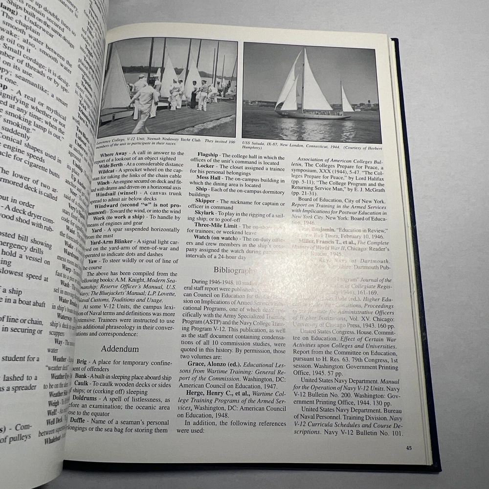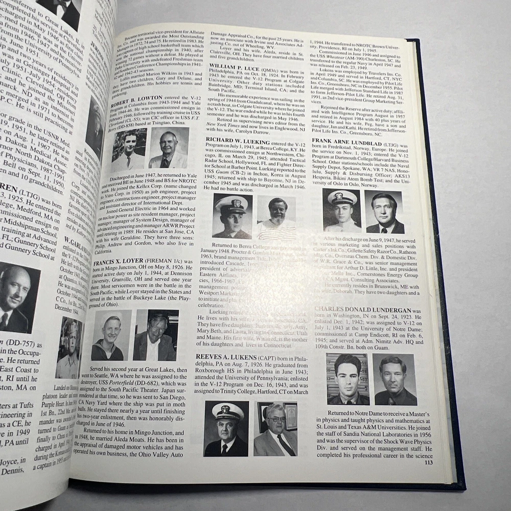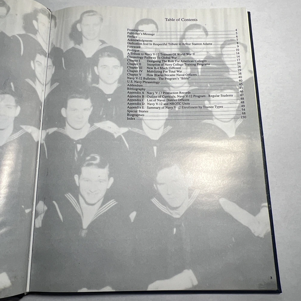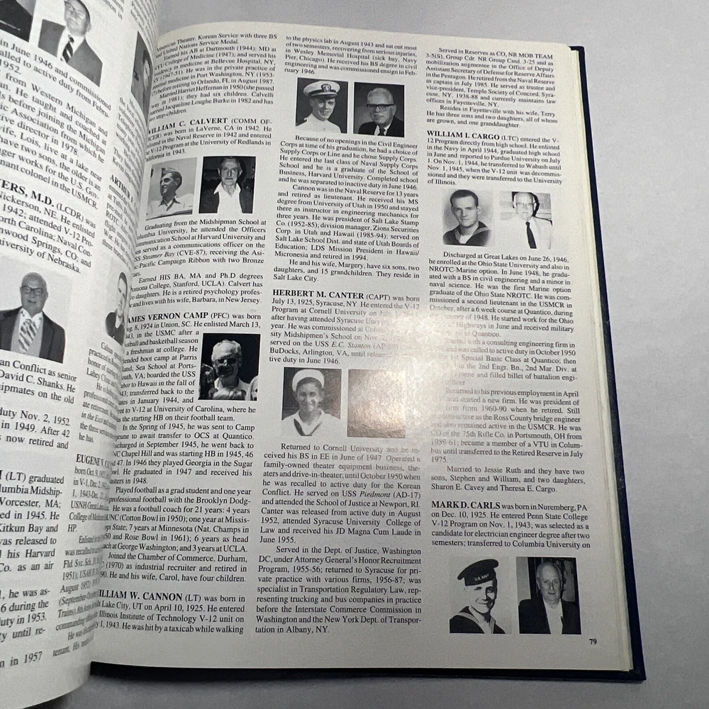 1996 NAVY V-12: A history of the Navy V-12 Program during World War II. The Program provided opportunities for young men whose families had suffered during the difficult times of the Great Depression. These high school graduates were offered the golden opportunity to attend colleges and universities. At the end of the program, more than 60,000 U.S. Navy and USMC officers had entered the armed forces for the war. Many, also entered the U.S. Naval Reserve in the post-ear period, and served in Korea and Vietnam. With photos -- 80+ pages of biographies of individual members of the program. Many include photos then and now. - Hardcover - Bonded Leather - First Edition - RARE (none of these exist in the world, was specially made for Elmer S. Kadar, who served in the U.S. Navy during WWII and was owner of Academy Film Service and Vienna Books by author). LANGUAGE: English PAGES: 156 MEASURES: 8.75” x 11.25” CONDITION: Has a musty smell, slight bevel to bottom right portion of pages but it is fairly not noticeable or extremely significant. Some foxing/yellowing/spotting to inside cover page. Inside back cover page has a blemish as well. Light cover front and back wear primarily in fading and some scuffing. Pages and book are pristine in nearly every other way. Please refer to extensive images. Overall: VERY GOOD! SHIPPING: Fast & free via USPS (for USA). Will ship same day if payment is received by 3pm EST! Free returns! Shipped with care (cardboard backers, bubble wrap, peanuts & or double boxed whenever necessary). Signature confirmation for high value items is required. ID: J