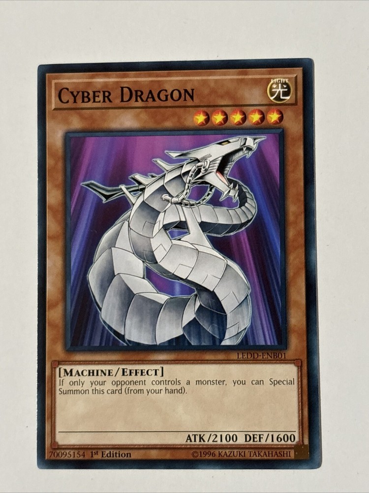 Unleash the power of the Machine Dragon with the 1996 Yu-Gi-Oh! Cyber Dragon card, an effect type monster that can bolster your deck with its unique abilities. This vintage card, numbered LEDD-N801, is a must-have for collectors and duelists alike, featuring the iconic artwork that fans of the series have come to admire.