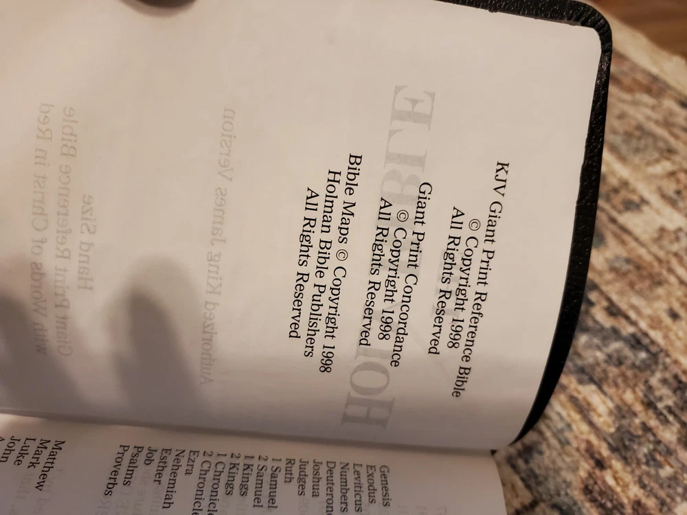 1998 Holy Bible. Hand Size Giant Print Reference Edition. Holman. Condition is "Very Good". Shipped with USPS Media Mail.