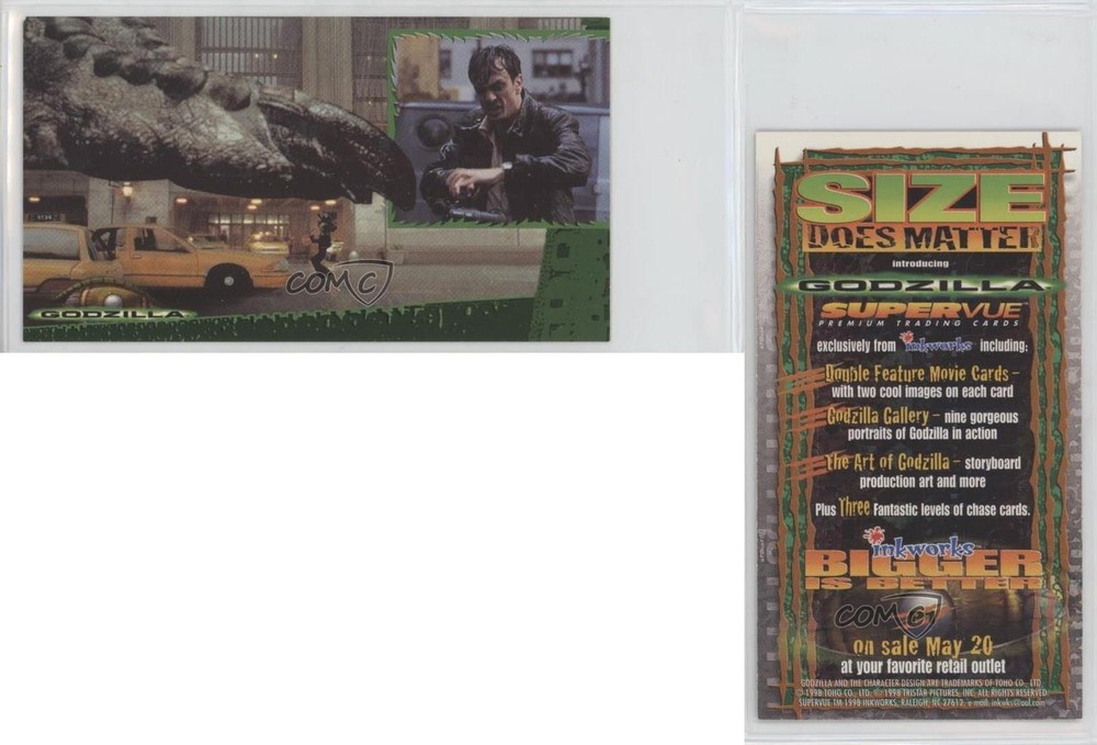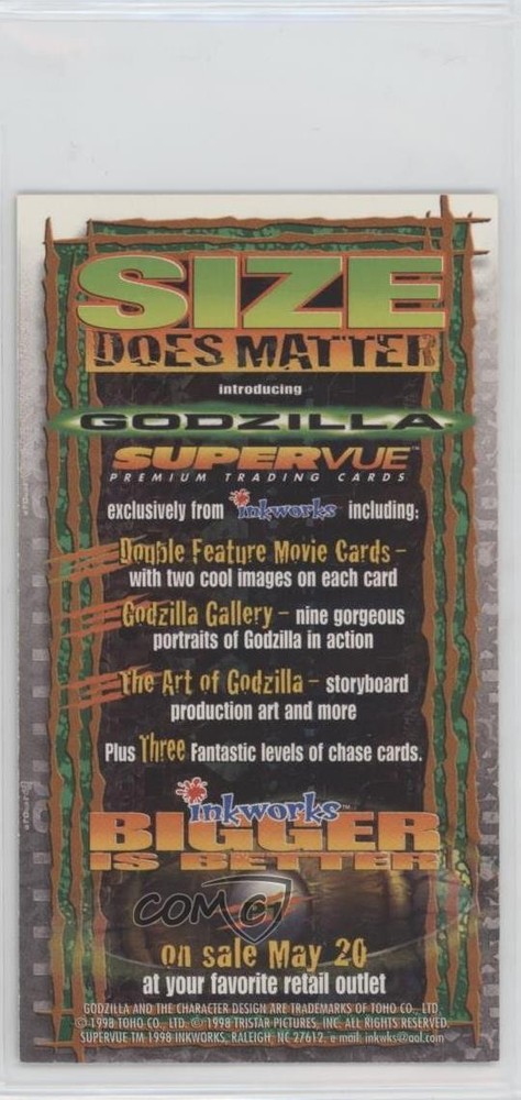 1998 Inkworks Godzilla - Promos #P1 Godzilla COMC Item: 111842199 - Non-Sports Card - Featuring Godzilla Search for more: 1998 Inkworks Godzilla Search for more: 1998 Inkworks Godzilla - Promos View all of our Listings Auctions Buy It Now About Us Located in the beautiful Pacific Northwest, COMC (Check Out My Cards) is the world's largest consignment service for trading card singles. More than 10,000 people have used our consignment service to list over 50 million trading cards. Find out how we can help you consign your items on eBay by contacting us through eBay messaging. COMC -- "The Safe & Easy Way to Buy & Sell" Raw Condition for Modern Cards Unless otherwise noted, raw modern cards are listed in Near Mint-Mint condition or better. A NM-MT card appears to be Mint at first glance, but upon closer inspection, may exhibit some of the following: minor print defects (e.g. roller marks, print line, dimple), minor scratches, slight edge wear, and slight corner wear. Centering is clearly visible in the images provided and does not factor into our condition assessment. Raw Condition for Vintage Cards Unless otherwise noted, raw vintage cards are listed in Excellent condition or better. An EX card may exhibit some of the following: minor rounding of corners, surface wear, print defects, light scratches, and slight edge wear/chipping. Centering is clearly visible in the images provided and does not factor into our condition assessment. Domestic Shipping Combined shipping for multiple items is available. To receive combined shipping, please ensure all desired items are in your eBay shopping cart before proceeding to checkout. eBay limits orders to 40 items per order. We automatically combine multiple orders placed on the same day. If you place multiple orders on the same day, please contact us to request a refund of applicable shipping costs. Signature confirmation may be required on invoices over $400. All cards are protected and shipped securely. International Shipping COMC offers eBay's International Shipping (EIS) for international orders under $2,500* (see country exceptions below). All duties and import fees are paid at checkout; in the rare event that there are additional import fees upon delivery, these are borne by the buyer. EIS packages route through a shipping hub in Erlanger, KY before shipping to their final destination. Please note that EIS does not allow for combined shipments. The shipping rates are determined by eBay and cannot be adjusted. *Maximum sale price exceptions: Colombia, Kuwait ($2,000); Taiwan ($1,539); Chile, Costa Rica, Guatemala, Honduras, Trinidad and Tobago ($1,000); Antigua and Barbuda, Aruba, Belize, Dominica, Grenada, Philippines, Saint Kitts and Nevis, Saint Lucia, Montserrat, Turks and Caicos Islands ($500); Dominican Republic, El Salvador ($200). Please request a shipping quote through eBay messaging for orders that exceed the maximum sale price supported by eBay's International Shipping. You will be responsible for all duties and import fees for international orders shipped outside the EIS. All cards are protected and shipped securely. Payment COMC does not accept offers on our cards through our eBay storefront. COMC utilizes eBay’s managed payments system. If you are experiencing difficulties making a payment, please contact eBay for assistance. Return Policy Returns are only accepted on the rare occasion the item is not as described. If you are making a return, please initiate the return process through eBay so a mailing label can be provided for you. Prior to listing, our expert team carefully assessed this item to represent it accurately. Please review the description and high-definition images prior to purchasing to ensure this item meets your satisfaction. We welcome you to contact us if you have further questions about this item. Trust and Integrity COMC carefully assesses each item consigned to us to prevent fraudulent items from entering the marketplace. If you believe an item offered on COMC may be fraudulent, please contact us with details so we can investigate the issue. Items we determine are outside our supported items policy may be removed. Last Modified: 6/2/2025 10:29:21 PM PDT