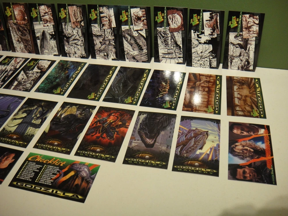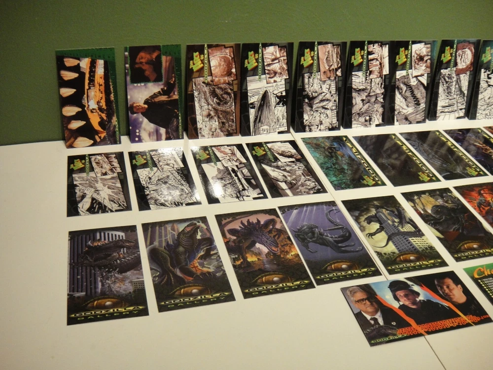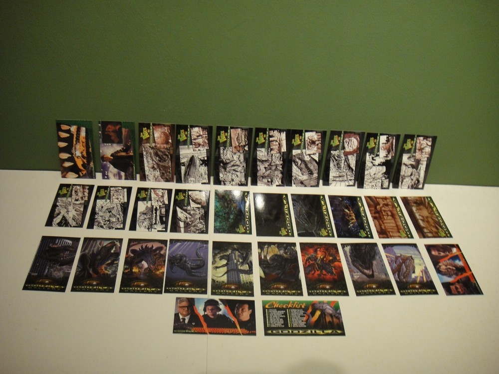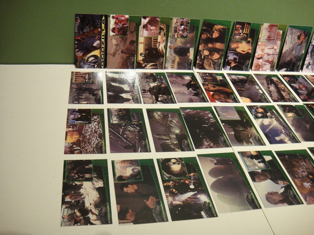 This is for a complete widevision base card set from the 1998 Godzilla The Movie card set by Inkworks, 1-72 cards. These came out of a collectors home and are very clean. If you have any questions or need more photos - just ask. Shipping - We do combine shipping, if you purchase multiple items either send an email requesting a combined shipping total or wait and we will send out a combined invoice. - Packages are shipped on Monday, Wednesday and Friday - We may change the shipping provider to give you a better deliver time, better insurance or better service depending on the item(s) purchased - if this is a problem, just let us know. - Magazines, trading card singles, comic books, sticker/decals and patches are mailed in envelopes - all other items unless noted will be shipped in a box. Please look at all the photos taken, as they are part of the description. Thank you for looking at our item(s).