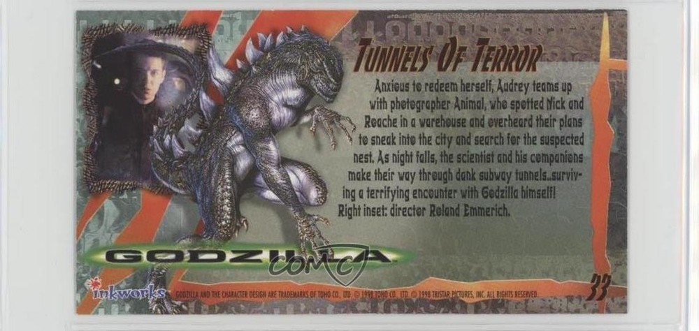 1998 Inkworks Godzilla - [Base] #33 Tunnels of Terror COMC Item: 34351016 - Non-Sports Card Search for more: 1998 Inkworks Godzilla Search for more: 1998 Inkworks Godzilla - [Base] View all of our Listings Auctions Buy It Now About Us Located in the beautiful Pacific Northwest, COMC (Check Out My Cards) is the world's largest consignment service for trading card singles. More than 10,000 people have used our consignment service to list over 50 million trading cards. Find out how we can help you consign your items on eBay by contacting us through eBay messaging. COMC -- "The Safe & Easy Way to Buy & Sell" Raw Condition for Modern Cards Unless otherwise noted, raw modern cards are listed in Near Mint-Mint condition or better. A NM-MT card appears to be Mint at first glance, but upon closer inspection, may exhibit some of the following: minor print defects (e.g. roller marks, print line, dimple), minor scratches, slight edge wear, and slight corner wear. Centering is clearly visible in the images provided and does not factor into our condition assessment. Raw Condition for Vintage Cards Unless otherwise noted, raw vintage cards are listed in Excellent condition or better. An EX card may exhibit some of the following: minor rounding of corners, surface wear, print defects, light scratches, and slight edge wear/chipping. Centering is clearly visible in the images provided and does not factor into our condition assessment. Domestic Shipping Combined shipping for multiple items is available. To receive combined shipping, please ensure all desired items are in your eBay shopping cart before proceeding to checkout. eBay limits orders to 40 items per order. We automatically combine multiple orders placed on the same day. If you place multiple orders on the same day, please contact us to request a refund of applicable shipping costs. Signature confirmation may be required on invoices over $400. All cards are protected and shipped securely. International Shipping COMC offers eBay's International Shipping (EIS) for international orders under $2,500* (see country exceptions below). All duties and import fees are paid at checkout; in the rare event that there are additional import fees upon delivery, these are borne by the buyer. EIS packages route through a shipping hub in Erlanger, KY before shipping to their final destination. Please note that EIS does not allow for combined shipments. The shipping rates are determined by eBay and cannot be adjusted. *Maximum sale price exceptions: Colombia, Kuwait ($2,000); Taiwan ($1,539); Chile, Costa Rica, Guatemala, Honduras, Trinidad and Tobago ($1,000); Antigua and Barbuda, Aruba, Belize, Dominica, Grenada, Philippines, Saint Kitts and Nevis, Saint Lucia, Montserrat, Turks and Caicos Islands ($500); Dominican Republic, El Salvador ($200). Please request a shipping quote through eBay messaging for orders that exceed the maximum sale price supported by eBay's International Shipping. You will be responsible for all duties and import fees for international orders shipped outside the EIS. All cards are protected and shipped securely. Payment COMC does not accept offers on our cards through our eBay storefront. COMC utilizes eBay’s managed payments system. If you are experiencing difficulties making a payment, please contact eBay for assistance. Return Policy Returns are only accepted on the rare occasion the item is not as described. If you are making a return, please initiate the return process through eBay so a mailing label can be provided for you. Prior to listing, our expert team carefully assessed this item to represent it accurately. Please review the description and high-definition images prior to purchasing to ensure this item meets your satisfaction. We welcome you to contact us if you have further questions about this item. Trust and Integrity COMC carefully assesses each item consigned to us to prevent fraudulent items from entering the marketplace. If you believe an item offered on COMC may be fraudulent, please contact us with details so we can investigate the issue. Items we determine are outside our supported items policy may be removed. Last Modified: 7/10/2025 7:19:08 AM PDT