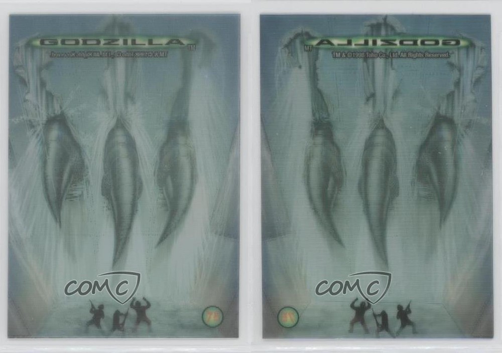 1998 JPP/Amada Godzilla Movie Cards - [Base] #75 Motion Cards - Godzilla COMC Item: 98017538 - Non-Sports Card - Featuring Godzilla Search for more: 1998 JPP/Amada Godzilla Movie Cards Search for more: 1998 JPP/Amada Godzilla Movie Cards - [Base] View all of our Listings Auctions Buy It Now About Us Located in the beautiful Pacific Northwest, COMC (Check Out My Cards) is the world's largest consignment service for trading card singles. More than 10,000 people have used our consignment service to list over 50 million trading cards. Find out how we can help you consign your items on eBay by contacting us through eBay messaging. COMC -- "The Safe & Easy Way to Buy & Sell" Raw Condition for Modern Cards Unless otherwise noted, raw modern cards are listed in Near Mint-Mint condition or better. A NM-MT card appears to be Mint at first glance, but upon closer inspection, may exhibit some of the following: minor print defects (e.g. roller marks, print line, dimple), minor scratches, slight edge wear, and slight corner wear. Centering is clearly visible in the images provided and does not factor into our condition assessment. Raw Condition for Vintage Cards Unless otherwise noted, raw vintage cards are listed in Excellent condition or better. An EX card may exhibit some of the following: minor rounding of corners, surface wear, print defects, light scratches, and slight edge wear/chipping. Centering is clearly visible in the images provided and does not factor into our condition assessment. Domestic Shipping Combined shipping for multiple items is available. To receive combined shipping, please ensure all desired items are in your eBay shopping cart before proceeding to checkout. eBay limits orders to 40 items per order. We automatically combine multiple orders placed on the same day. If you place multiple orders on the same day, please contact us to request a refund of applicable shipping costs. Signature confirmation may be required on invoices over $400. All cards are protected and shipped securely. International Shipping COMC offers eBay's International Shipping (EIS) for international orders under $2,500* (see country exceptions below). All duties and import fees are paid at checkout; in the rare event that there are additional import fees upon delivery, these are borne by the buyer. EIS packages route through a shipping hub in Erlanger, KY before shipping to their final destination. Please note that EIS does not allow for combined shipments. The shipping rates are determined by eBay and cannot be adjusted. *Maximum sale price exceptions: Colombia, Kuwait ($2,000); Taiwan ($1,539); Chile, Costa Rica, Guatemala, Honduras, Trinidad and Tobago ($1,000); Antigua and Barbuda, Aruba, Belize, Dominica, Grenada, Philippines, Saint Kitts and Nevis, Saint Lucia, Montserrat, Turks and Caicos Islands ($500); Dominican Republic, El Salvador ($200). Please request a shipping quote through eBay messaging for orders that exceed the maximum sale price supported by eBay's International Shipping. You will be responsible for all duties and import fees for international orders shipped outside the EIS. All cards are protected and shipped securely. Payment COMC does not accept offers on our cards through our eBay storefront. COMC utilizes eBay’s managed payments system. If you are experiencing difficulties making a payment, please contact eBay for assistance. Return Policy Returns are only accepted on the rare occasion the item is not as described. If you are making a return, please initiate the return process through eBay so a mailing label can be provided for you. Prior to listing, our expert team carefully assessed this item to represent it accurately. Please review the description and high-definition images prior to purchasing to ensure this item meets your satisfaction. We welcome you to contact us if you have further questions about this item. Trust and Integrity COMC carefully assesses each item consigned to us to prevent fraudulent items from entering the marketplace. If you believe an item offered on COMC may be fraudulent, please contact us with details so we can investigate the issue. Items we determine are outside our supported items policy may be removed. Last Modified: 5/21/2025 3:51:41 AM PDT