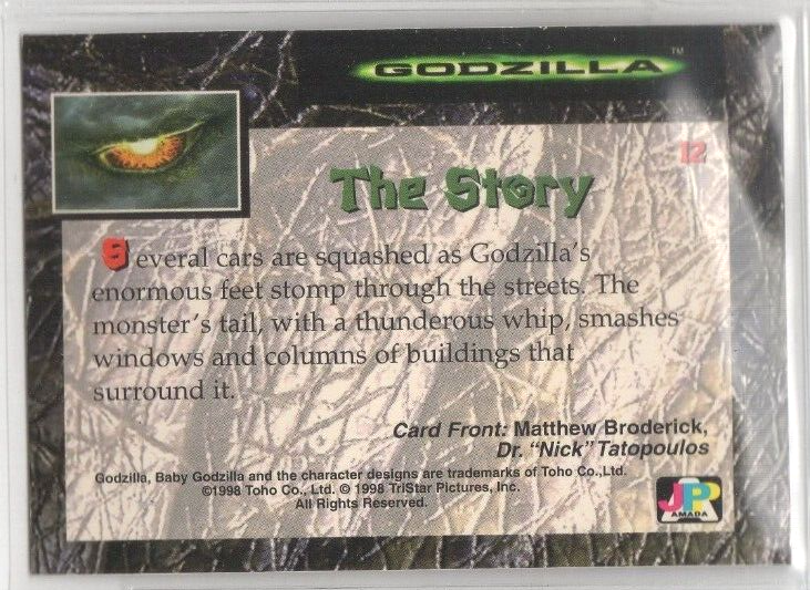 1998 Toho GODZILLA Movie Foil card #12 . Card is in nice condition. Buyer to pay calculated shipping charges. I am happy to combine items to save you the most on shipping so please visit my store....