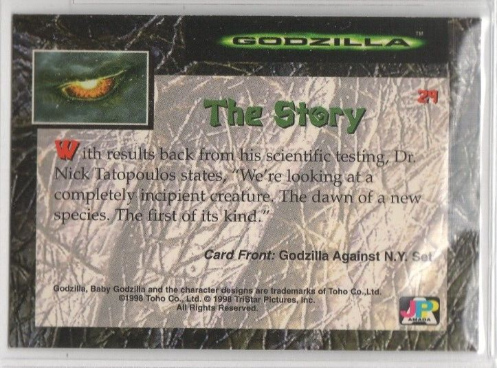 1998 Toho GODZILLA Movie Foil card #29 . Card is in nice condition. Buyer to pay calculated shipping charges. I am happy to combine items to save you the most on shipping so please visit my store.