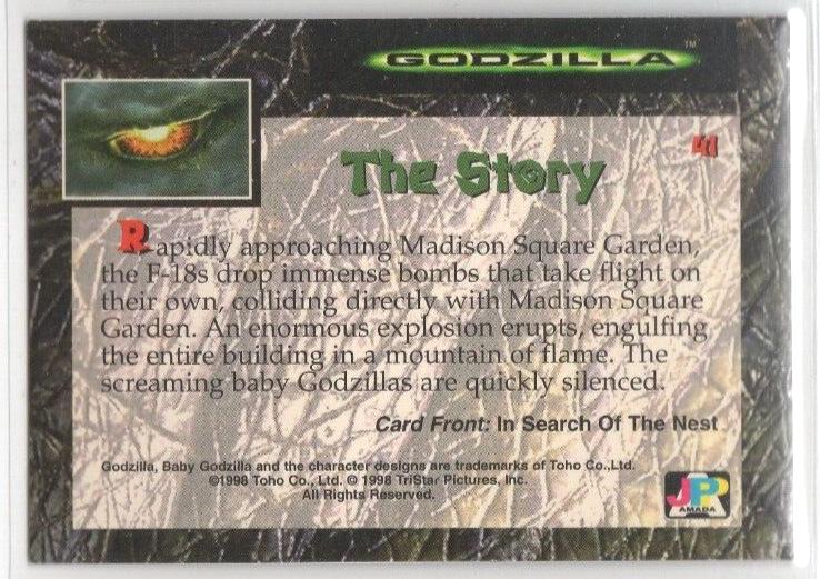1998 Toho GODZILLA Movie Foil card #41 . Card is in nice condition. Buyer to pay calculated shipping charges. I am happy to combine items to save you the most on shipping so please visit my store....
