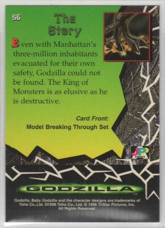 1998 Toho GODZILLA Movie Foil card #56 . Card is in nice condition. Buyer to pay calculated shipping charges. I am happy to combine items to save you the most on shipping so please visit my store....