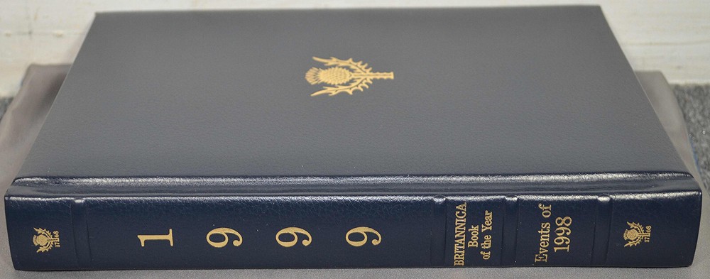 1999 Britannica Book of the Year for events of 1998 - Leather bound- Excellent condition. This copy of the 1999 Britannica Book of the Year is in excellent condition, does not look like it was used. This copy of the 1999 Britannica Book of the Year is in excellent condition, does not look like it was used. These make great gifts for people that were born during 1998! Thanks for looking at my items. Colors of items may vary due to lighting, photography, and computer screen color variations. Please check photo's carefully as that is part of the description and are photo's of the actual item you will receive. If it is not in the photo it is not included, please check closely. We reserve the right to choose the shipping method unless you send us a note requesting a quote on a specific shipping service prior to your purchase. Please check out my other items as we are listing new items almost daily.