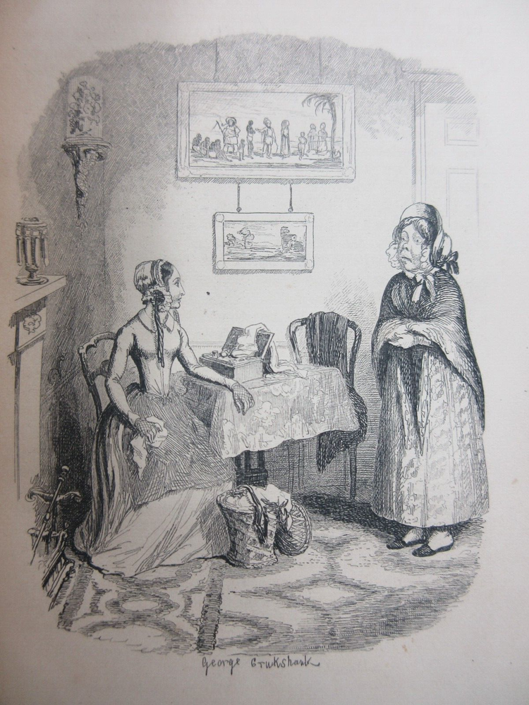 For sale is an excellent condition, leather-bound first edition of The Greatest Plauge of My Life or The Adventures of a Lady: In Search of a Good Servant. by One Who has been "Almost Worried to Death" by Augustus Mayhew with illustrations by George Cruikshank. First Edition p ublished in 1847 by David Bogue in London. Includes 12 illustrated plates throughout the book. P rofessionally bound in leather with marbled endpapers by bookbinders Root & Son. Binding is tight and pages are unmarked, with the exception very light age toning around the edges of the pages. Fore-edges feature gilded top stain (an intentional gold coloring used by the publisher on the page ends). Boards are clean and square with only light shelf wear. Leather spine looks excellent with bright title gilding. Please see photos for condition detail. shelf reference #L-1261
