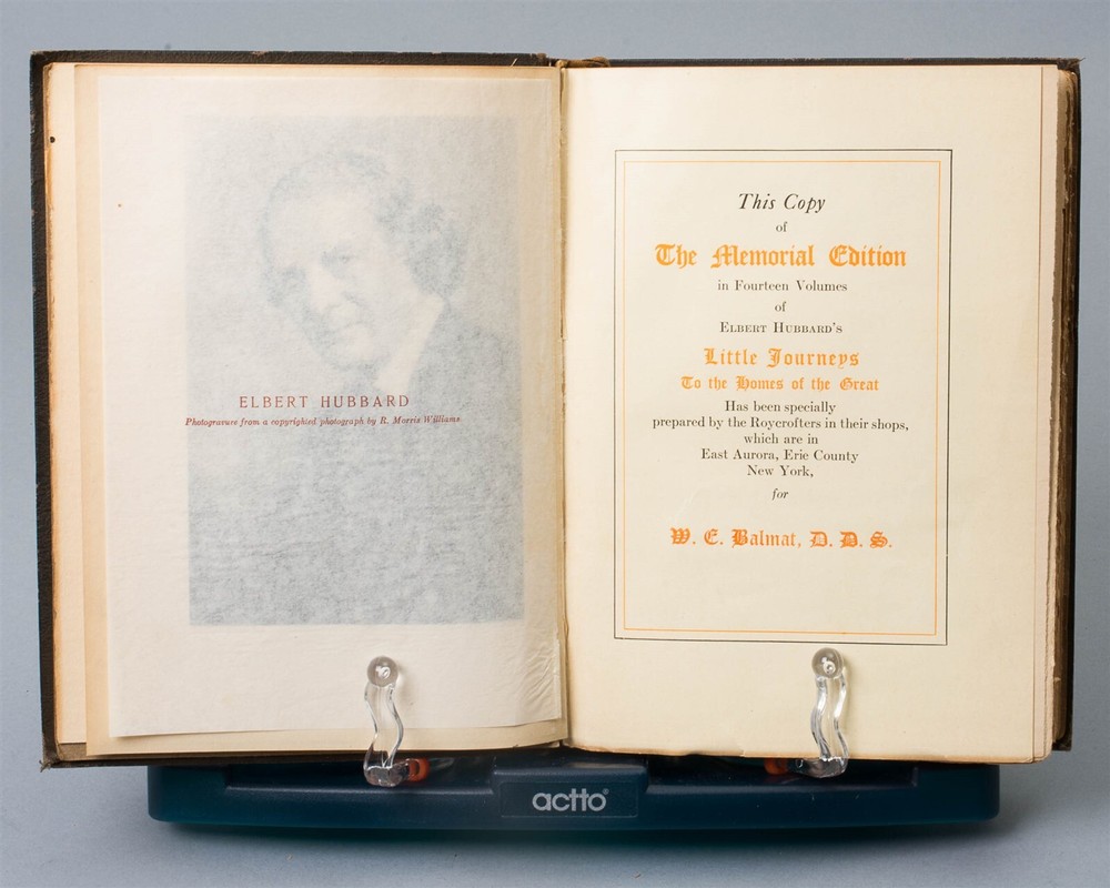 Elbert Hubbard II, Little Journeys to the Homes of the Great Volume I (1): Good Men and Great First (1st) Leather-bound Memorial Edition Fifteen Portrait Plates, Rough Edges, Gilt Top First Printing by the Roycrafters, New York for W.C. Balmat, D.D.S. William H. Wide & Co. Publishing, New York, 1916 Good Antique Condition W1