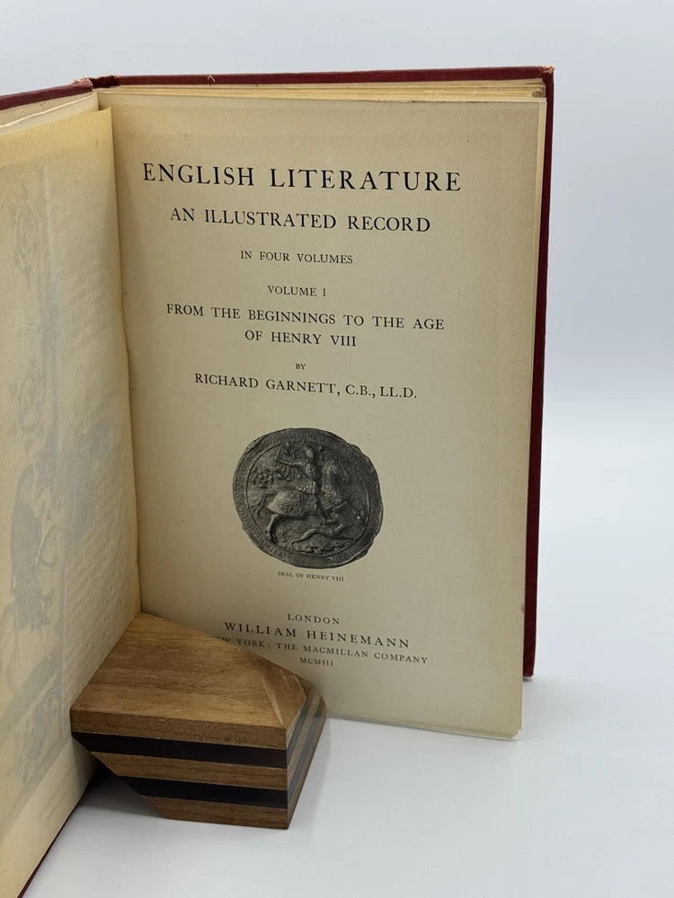 First edition of English Literature: An Illustrated Record by Richard Garnett. Four volumes. Rubbing to edges and boards. Sun fading to spines.