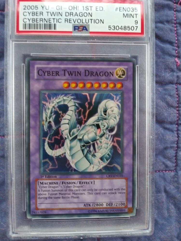 The winner of this listing will receive the actual card pictured above - 1x Cyber Twin Dragon - CRV-EN035 - 1st Edition - Super Rare - PSA 9 If you have any questions I will be happy to answer them. Ask for additional pictures. I ship only in the US. Thanks for looking and have a great day! :)