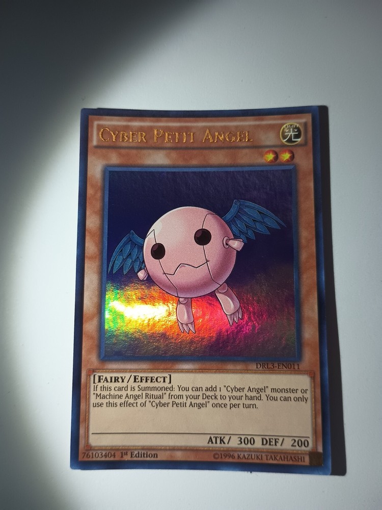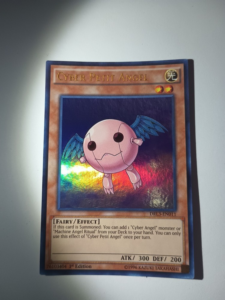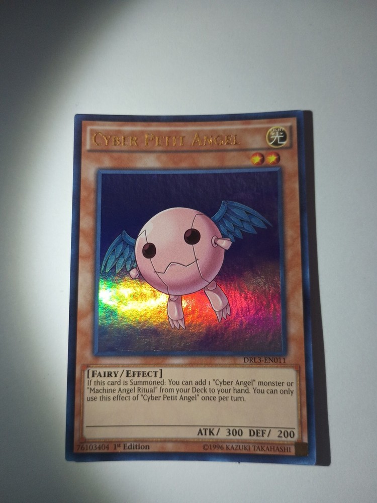 Just got this Cyber Petit Angel card and wow, it's even better than expected! The holographic foil really pops under the light, and the corners are perfectly crisp. Such a cool addition to my Dragons of Legend collection - definitely worth it for any serious duelist!