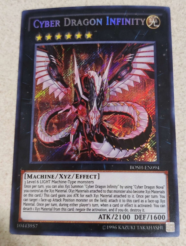 1x Yu-Gi-Oh! Cyber Dragon Infinity - BOSH-EN094 - Secret Rare - Unlimited Edition - NM Cyber Dragon Infinity 1 Copy BOSH-EN094 Unlimited Edition Secret Rare Mint/Near Mint Condition Language: English Shipping from: Canada Shipping to: Canada, USA All card(s) are shipped in a hard plastic top-loader sleeve, securely taped. All item(s) in the listing are 100% Konami TCG authentic and are ready for tournament use. Photo(s) are of the actual item(s). Shipped from a smoke-free and pet-free home. Seller does not provide combine shipping discounts. Returns NOT accepted. All sales are final. Payment method(s) accepted: PayPal Seller reserves the right to cancel, modify or remove the listing at any time. IMPORTANT: ALL ORDERS THAT TOTAL TO/AND OR ABOVE $50.00 (INCLUDING REGULAR SHIPPING COSTS ($1.98 TO CANADA/$3.98 TO USA)), MUST INCLUDE AN ADDITIONAL $20.00 CHARGE TO INCLUDE TRACKING+ DELIVERY CONFIRMATION. THIS IS A MANDATORY ADD-ON TO BETTER PROTECT BOTH THE BUYER AND THE SELLER. IF YOU DO NOT WISH TO PAY THE ADDITIONAL CHARGES, THE ORDER WILL BE CANCELED AND YOU WILL RECEIVE A REFUND IN-FULL. THANK YOU FOR YOUR UNDERSTANDING!