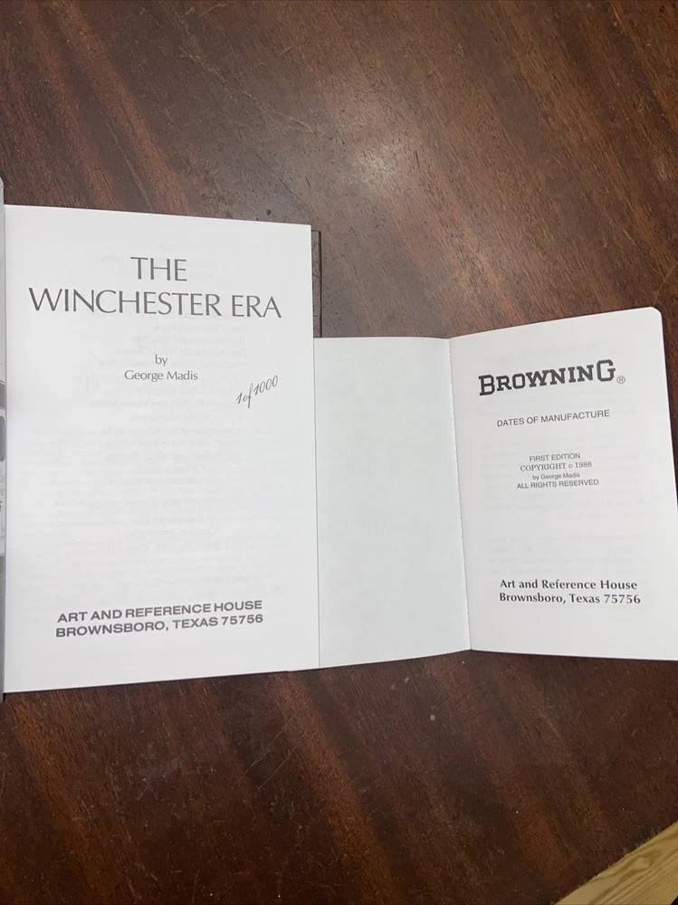 Two new books in one package. The Winchester ERA Book 1 of 1000 Book George Madis Collectible. Browning Dates of Manufacture , from 1824, First edition. Condition is New. Shipped with USPS Media Mail. All shipped together.