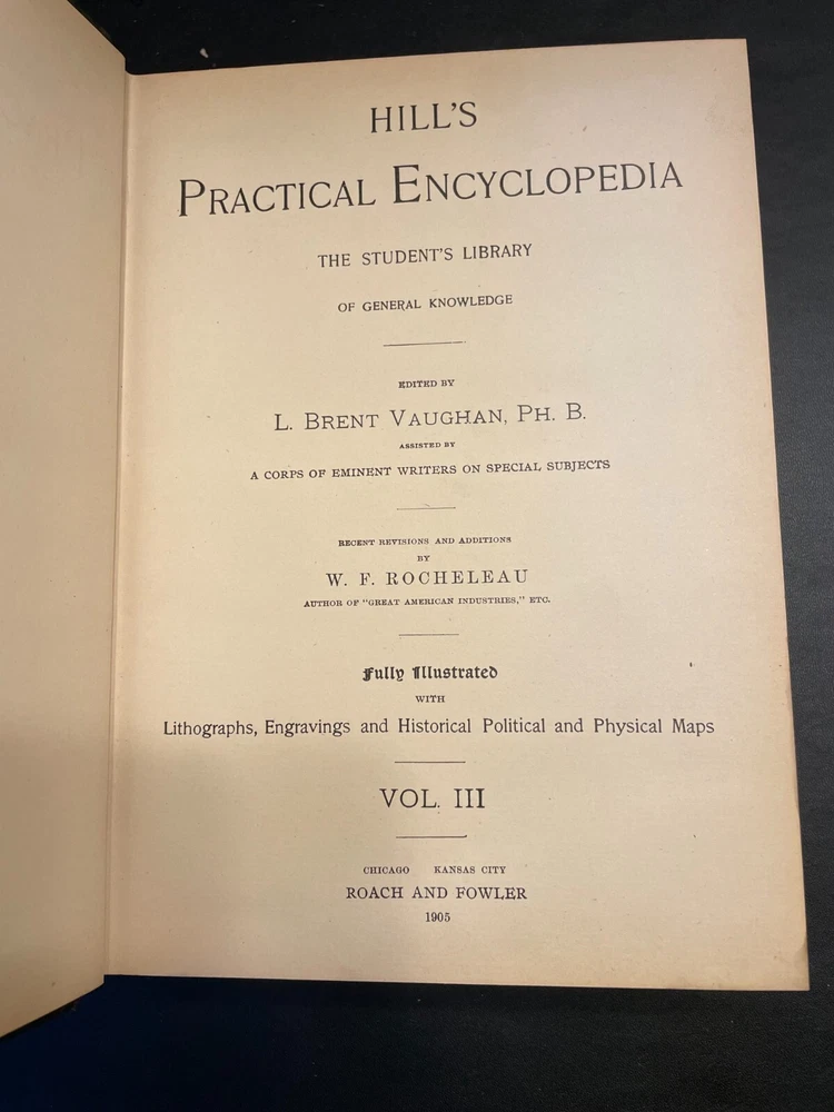 Up for sell is 2 Hill's Practical Encyclopedia of General Knowledge Dated 1905. You will get Vol - III & IV. Pages are in good condition. Vol. III has 1 page that is no longer attached to the book. 1. We try to give the most accurate description as best as possible on all items we sale. Please look at all pictures and bid with confidence. We are more than glad to answer any questions that you might have. Item comes from a smoke free home. 2. Positive feedback will be left once we have received feedback. Please leave positive feedback once your item has arrived and you are pleased with your purchase. If there is a problem of any kind let us know and we will strive to make things right. 3. If you are bidding on more than 1 item, please let us know when all auctions you are bidding on end. Once all auctions have ended request an invoice and we will combine shipping on all your new treasures. 4. When purchasing more than 1 item from our store place all items in your cart and then click on request invoice. We will send an invoice with combine shipping. 5. We gladly accept returns; however, items must be returned in the stated condition as listed in the auction and must be returned in the original shipping box /bubble envelope it was received in along with all packing material to include bubble wrap, packing peanuts etc. If item came wrapped in cardboard, it must be returned in the original cardboard it was received it. Items returned damage will not receive a refunded.