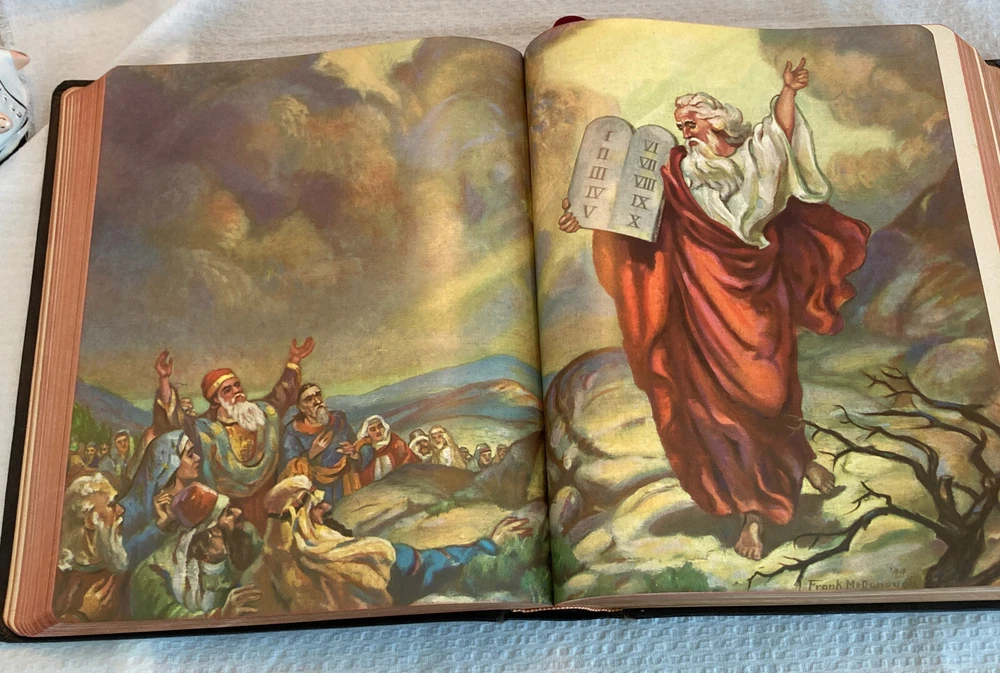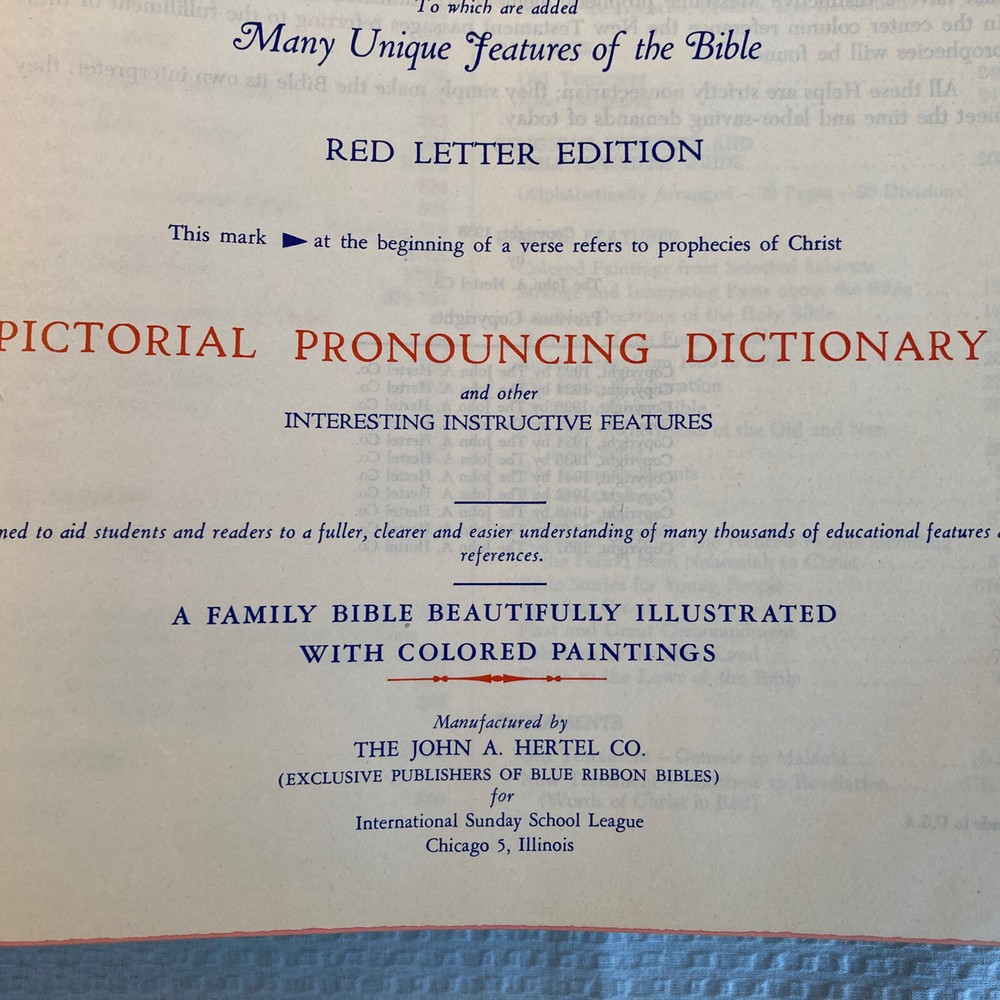 This Listing is For a Set of 2 Christian Books. The 1st is the Holy Bible 1955 Hertel New Standard Reference Bible Blue Ribbon Red Letter Edition. This is a Very Large Book of 954 Pages. It Was Translated Out of the Original Tongues and With All Former Translations Diligently Compared and Revised. It Has an Alphabetical and Cyclopedic Index, A Comprehensive Bible Dictionary and Beautifullu Illustrated Colored Pictures. The Front Presentation Page is Gone But There Are Other Pages for Personal Family History. Also Included is, "The Life of Christ in Masterpieces of Art". It Has 44 Plates in Full Color Photogravure and the Words of the New Testament. The Art Could be Lifted From the Book and Framed. There Are Some Gilted Photos. This Book is Approx. 13" Tall by 10" Wide. The Bible Measures Approx. 12" Tall by 9-1/2" Wide and 2-1/2" Deep. Two Quality Religious Books. Lovely! Please See My Condition Description and My Photos in the Enlarged Mode. Also Check Out My Store For Other Varied Items.