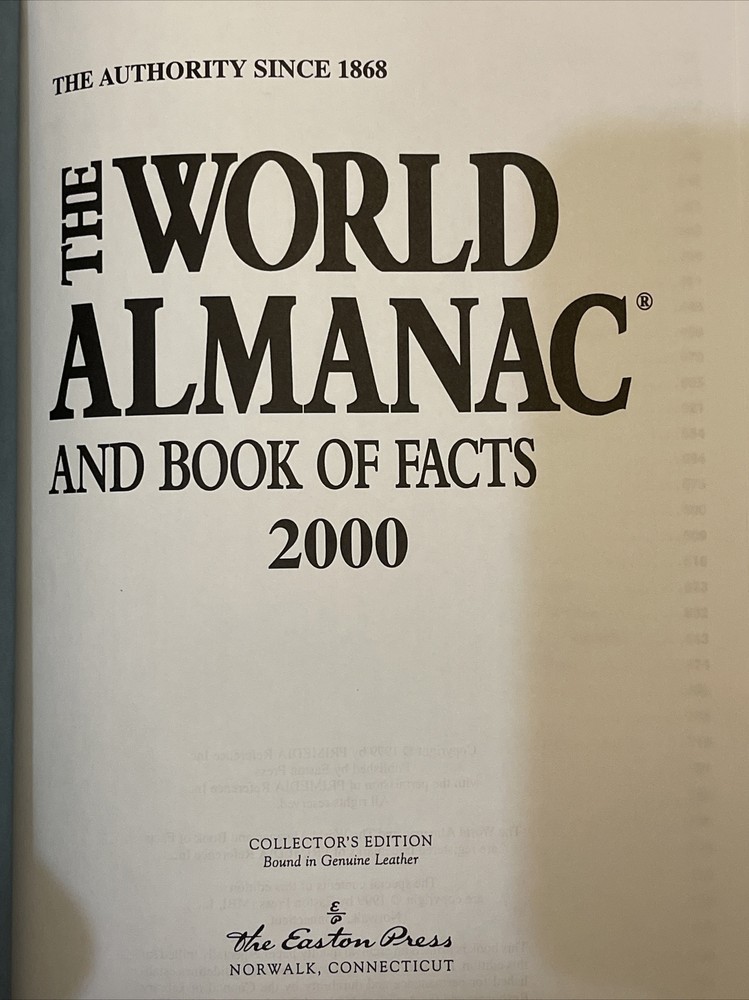 2000 year Millenium THE WORLD ALMANAC 2000 Easton Press (Like New).