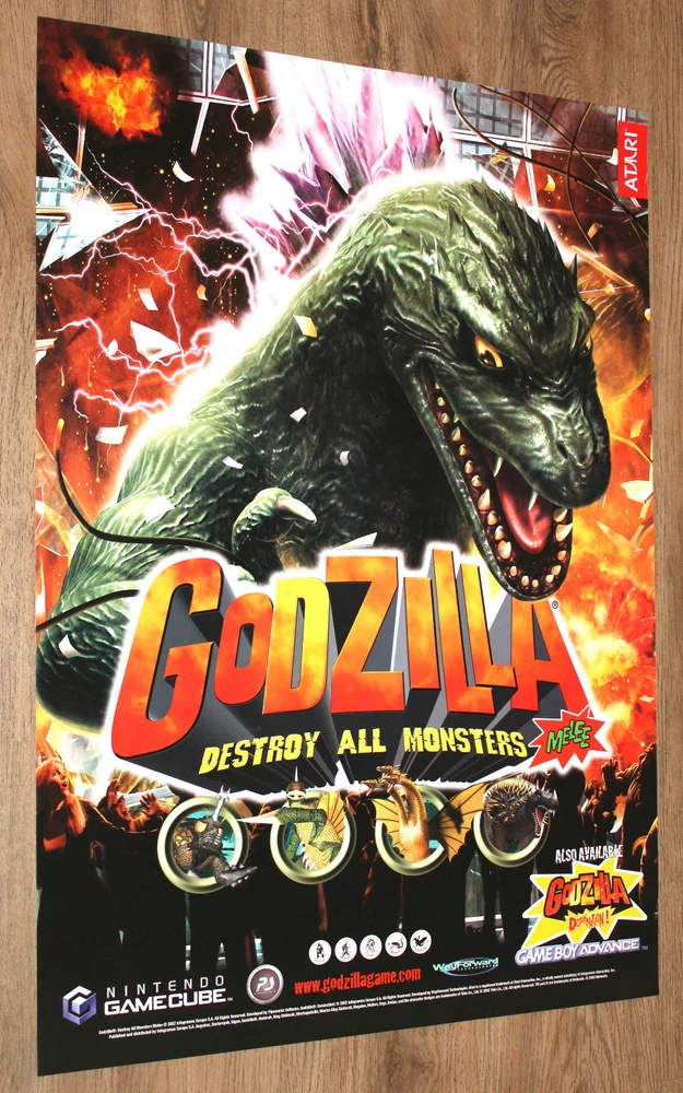 2002 Godzilla Destroy All Monsters Melee Promo rare Poster 84x59.5cm GameCube GC Its an original promo poster and it will be shipped rolled in a shipping tube I will be listing a lot of promo games poster over 200 posters in the coming days, some doubles triples etc with different or same conditions, if you are interested you can check my shop Condition : the rolled promo posters which are listed as "not used" in the Condition description are posters which have not been used and were not on the wall, they have been stored for years well protected, but there still may be some very very little storage wear which is mainly not visible in the pictures which are listed as "little storage wear" or "storage wear" in the Condition description are also not used and have not been on the wall and the wear will mainly be visible on the pictures, if it's really very very little it might no be visible in the pictures which are listed as "used" , "little damage" or "damaged" in the Condition description , for those the condition is always as in the pictures and the pictures mainly show the condition etc