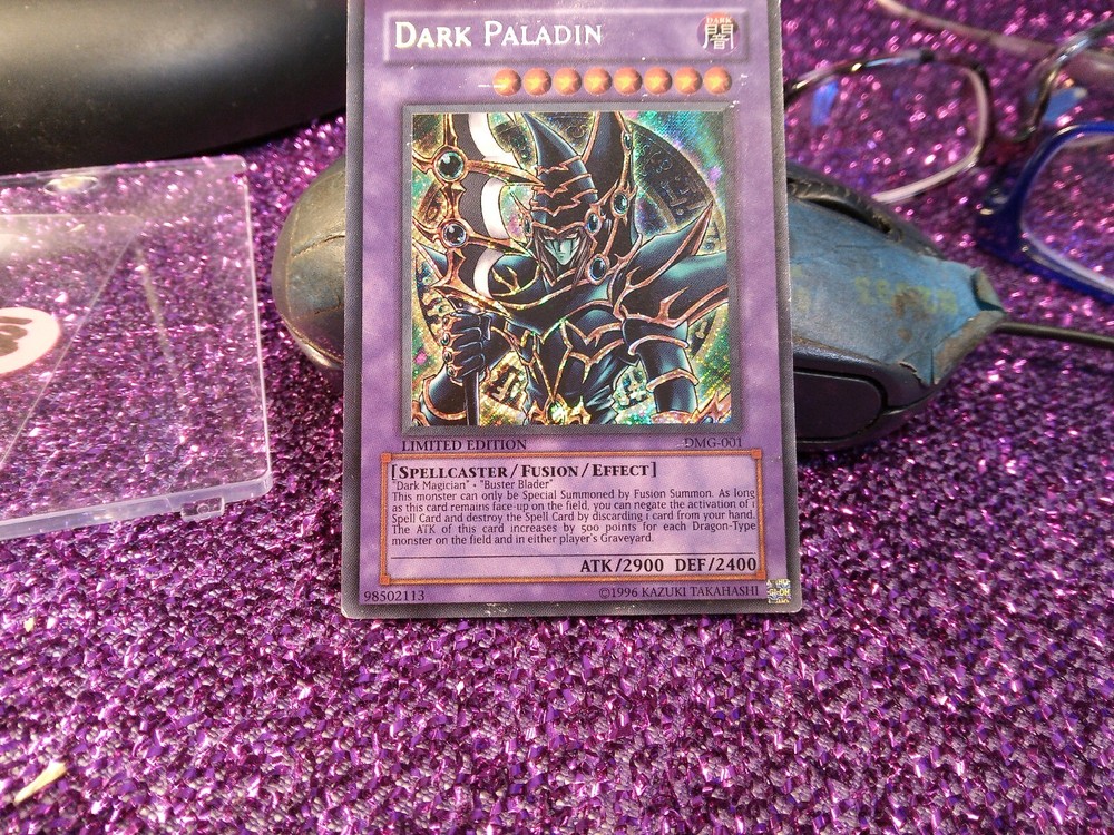 This Dark Paladin card is a must-have for collectors! Despite some light creases and corner wear, the foil still shines beautifully with great eye appeal. A rare 2003 limited edition gem that adds serious value to any Yu-Gi-Oh! collection. The nostalgic DMG-001 brings back classic duel vibes—totally worth it for fans and players alike!