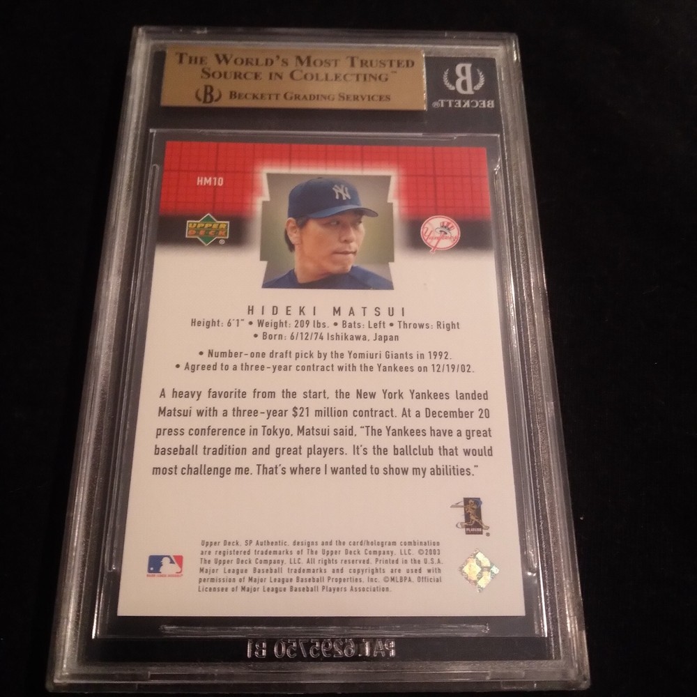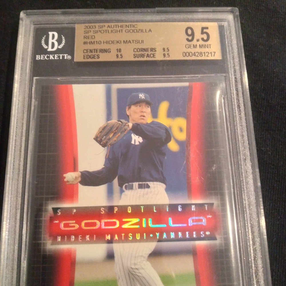 Step up to the plate with this 2003 SP Authentic Spotlight Godzilla card featuring Hideki Matsui, the legendary New York Yankees player. This rare collectible, serial numbered to just 55, captures Matsui's rookie season and is a must-have for any baseball memorabilia enthusiast or fan of the game. Crafted by Upper Deck, this card is part of the esteemed 2003 SP Authentic set and is a treasure for its detail and quality. It's a unique piece of sports history that celebrates both the player and the iconic New York Yankees team.
