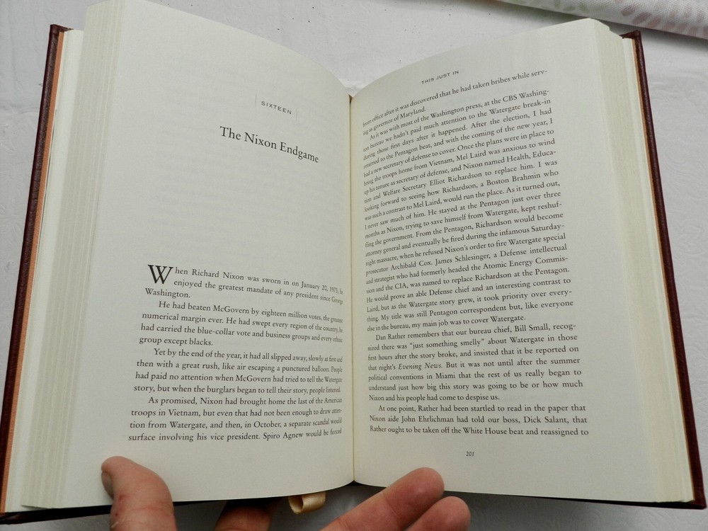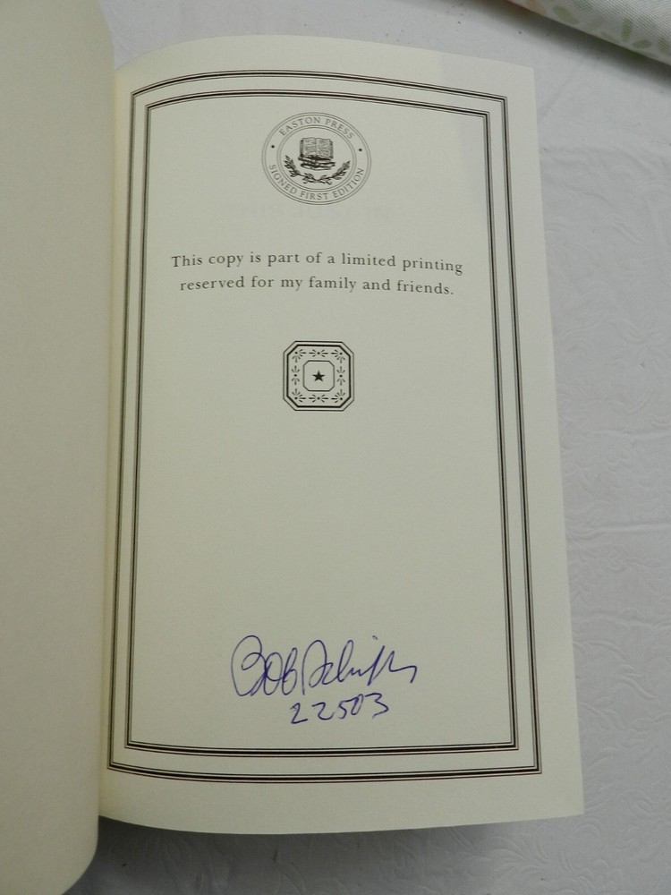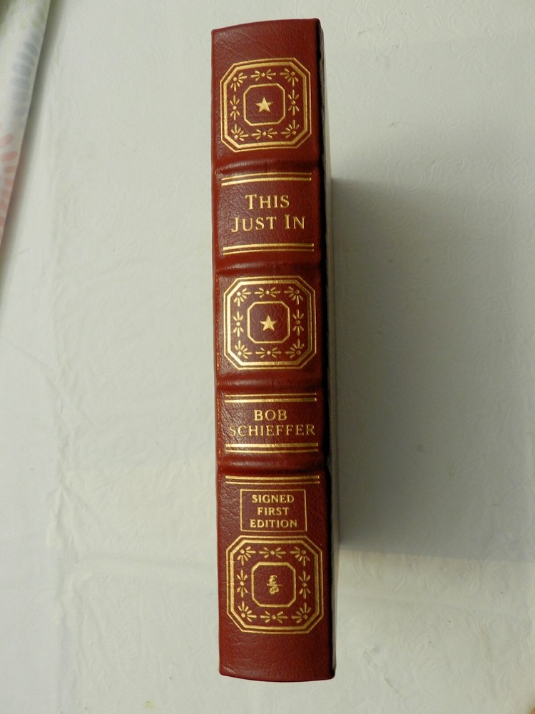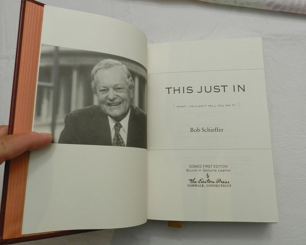 Collector's Edition, First Thus published in 2003 by Easton Press. SIGNED BY AUTHOR BOB SCHIEFFER. All others that I've seen online are limited and numbered on the limitation page - this one just notes, "This copy is part of a limited printing reserved for my family and friends". The signature is consistent with all others seen for this book but there is also a number beneath the signature in what appears to be the same pen and handwriting. Obviously I don't know what this number is about. Bound in genuine leather, accented in 22kt gold, printed on archival paper with gilded edges. The endsheets are of moire fabric with a silk ribbon page marker. 432 pages, no photos or illustrations, in NEAR FINE CONDITION, with the only wear issues being a crease along the bottom of the ribbon which was found outside the book, not curled back into the book, and a few white flecks on the bottom edge of the back board. Gilt on page edges is clean all around and boards otherwise pristine. B