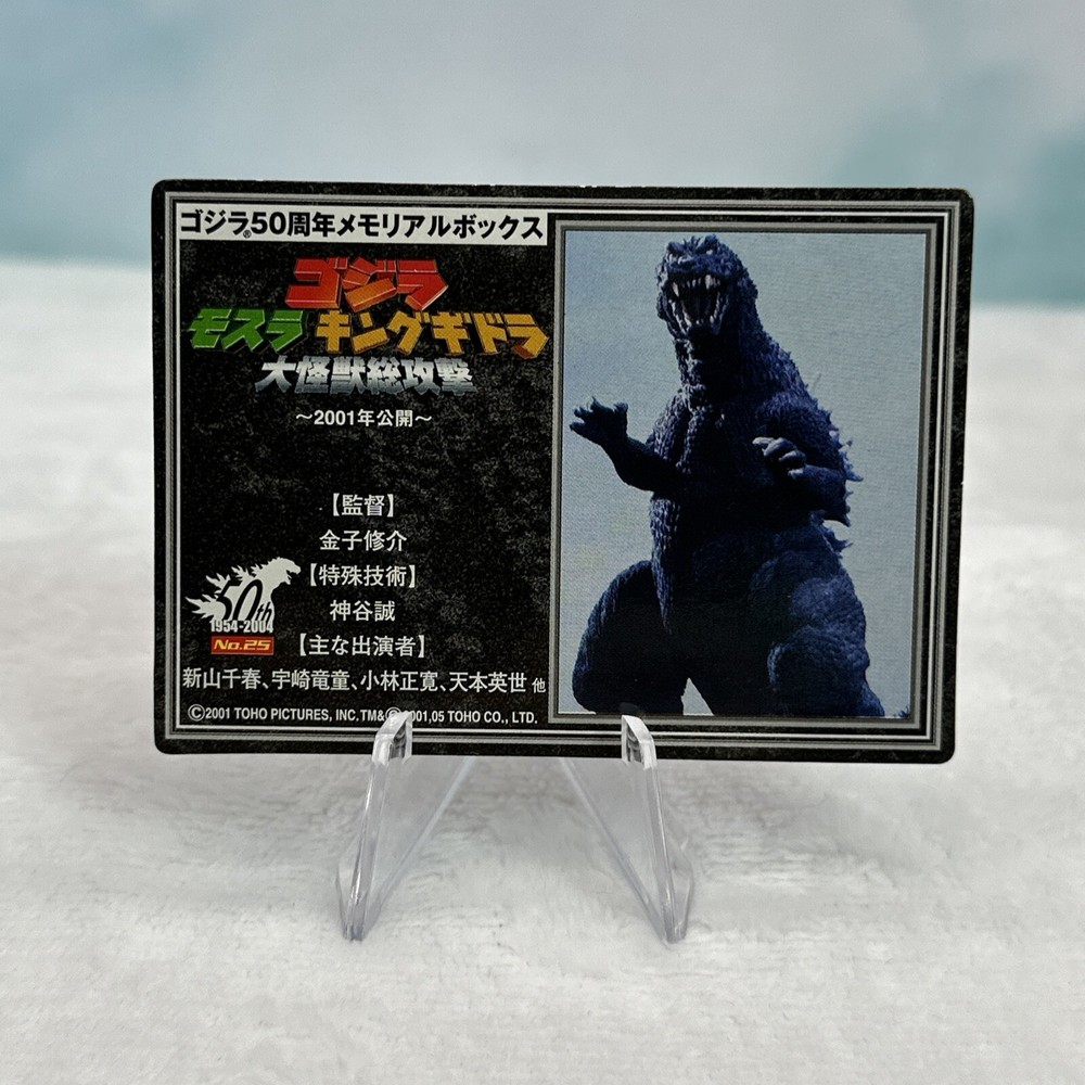 THIS LISTING IS FOR THE CARD ONLY, NO FIGURE…. This is the ultimate collectible for fans of the legendary Godzilla! A 6-inch Bandai figure dating from 2005, this Godzilla 2001 figure comes in a special 50th anniversary memorial box. The box includes a collectible card, making it a must-have for any serious Godzilla collector. The figure was made in Japan and features all the classic details fans have come to expect from Bandai. Perfect for display or as part of a larger collection. Don't miss out on this rare and highly sought-after item!