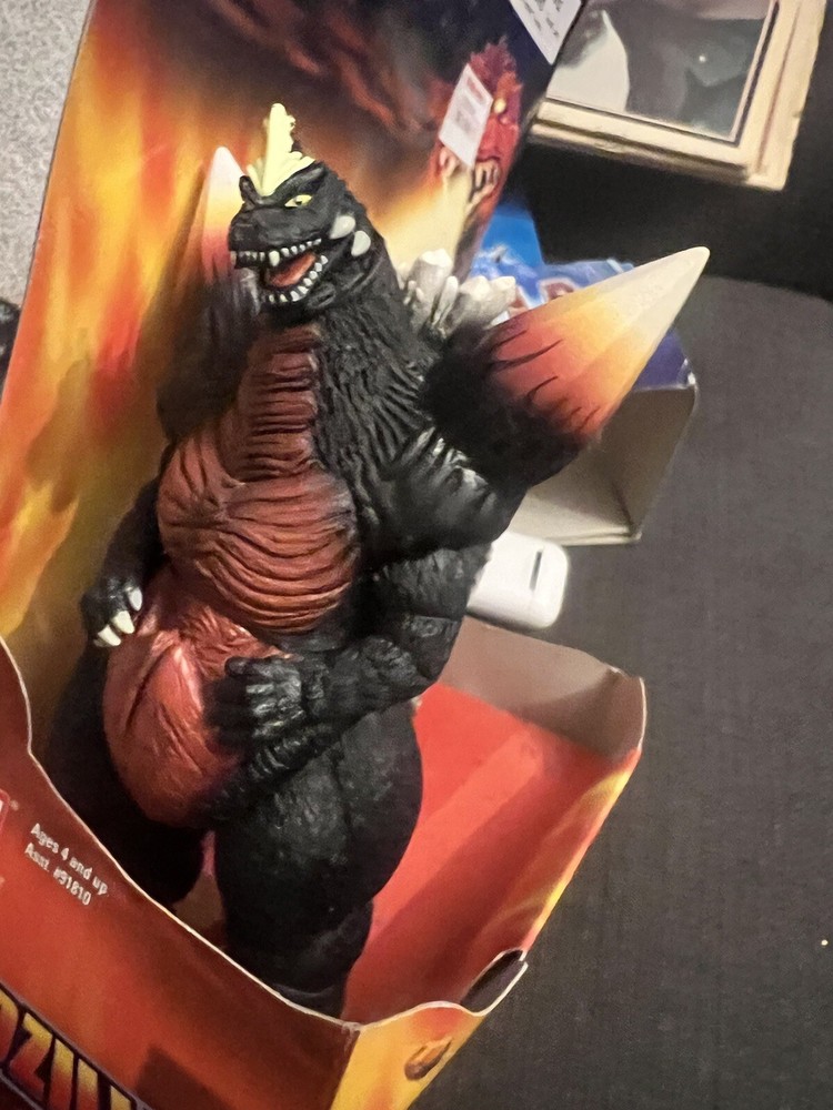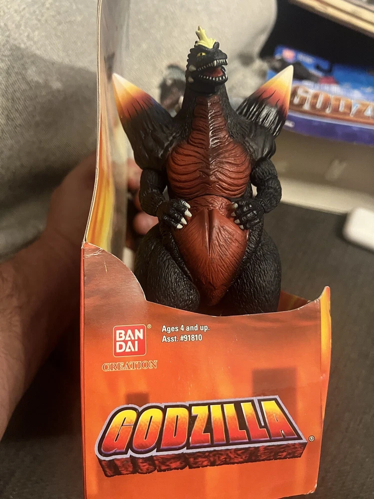 c2005 Bandai Tojo Space Godzilla figure. Sealed to a card. Card has some bumps and dents. Thin cardboard. One part of a massive Bandai Godzilla collection. Find this one often loose. Not often on the card. Please let me know if you have any questions Capitol Salvage - Facebook and Instagram