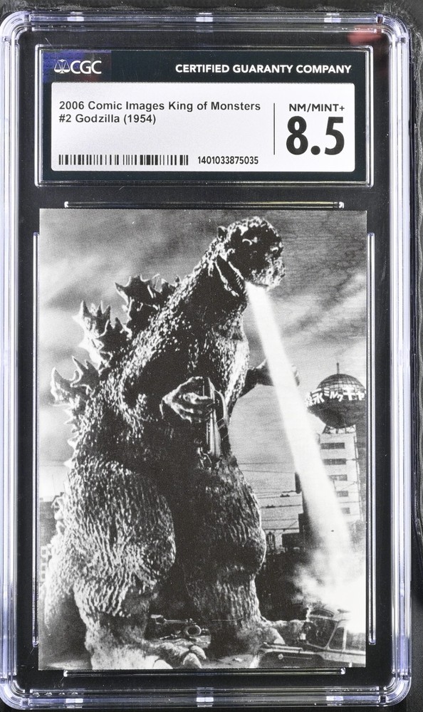 Comic Images Godzilla: King of the Monsters #2 Godzilla (1954) CGC GRADED 8.5 - NM/MINT+ Card in pictures is the exact card you will receive. slab stored double sleeved and will ship very well protected, and IN A BOX to ensure no damage in transit.