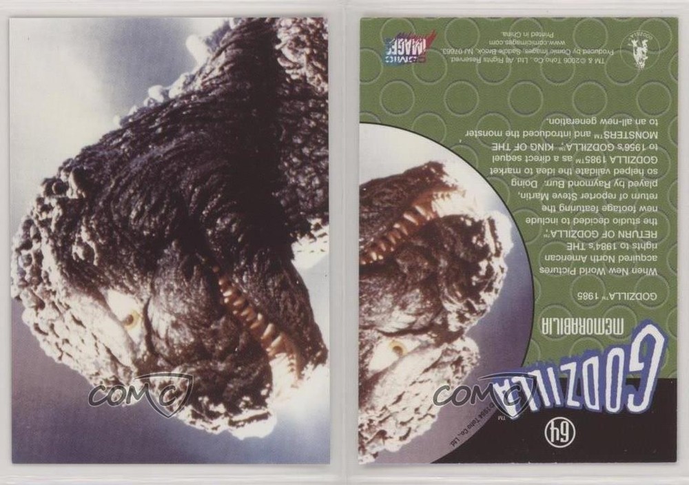 2006 Comic Images Godzilla: King of the Monsters - [Base] #64 Memorabilia - Godzilla 1985 COMC Item: 105453370 - Non-Sports Card Search for more: 2006 Comic Images Godzilla: King of the Monsters Search for more: 2006 Comic Images Godzilla: King of the Monsters - [Base] View all of our Listings Auctions Buy It Now About Us Located in the beautiful Pacific Northwest, COMC (Check Out My Cards) is the world's largest consignment service for trading card singles. More than 10,000 people have used our consignment service to list over 50 million trading cards. Find out how we can help you consign your items on eBay by contacting us through eBay messaging. COMC -- "The Safe & Easy Way to Buy & Sell" Raw Condition for Modern Cards Unless otherwise noted, raw modern cards are listed in Near Mint-Mint condition or better. A NM-MT card appears to be Mint at first glance, but upon closer inspection, may exhibit some of the following: minor print defects (e.g. roller marks, print line, dimple), minor scratches, slight edge wear, and slight corner wear. Centering is clearly visible in the images provided and does not factor into our condition assessment. Raw Condition for Vintage Cards Unless otherwise noted, raw vintage cards are listed in Excellent condition or better. An EX card may exhibit some of the following: minor rounding of corners, surface wear, print defects, light scratches, and slight edge wear/chipping. Centering is clearly visible in the images provided and does not factor into our condition assessment. Domestic Shipping Combined shipping for multiple items is available. To receive combined shipping, please ensure all desired items are in your eBay shopping cart before proceeding to checkout. eBay limits orders to 40 items per order. We automatically combine multiple orders placed on the same day. If you place multiple orders on the same day, please contact us to request a refund of applicable shipping costs. Signature confirmation may be required on invoices over $400. All cards are protected and shipped securely. International Shipping COMC offers eBay's International Shipping (EIS) for international orders under $2,500* (see country exceptions below). All duties and import fees are paid at checkout; in the rare event that there are additional import fees upon delivery, these are borne by the buyer. EIS packages route through a shipping hub in Erlanger, KY before shipping to their final destination. Please note that EIS does not allow for combined shipments. The shipping rates are determined by eBay and cannot be adjusted. *Maximum sale price exceptions: Colombia, Kuwait ($2,000); Taiwan ($1,539); Chile, Costa Rica, Guatemala, Honduras, Trinidad and Tobago ($1,000); Antigua and Barbuda, Aruba, Belize, Dominica, Grenada, Philippines, Saint Kitts and Nevis, Saint Lucia, Montserrat, Turks and Caicos Islands ($500); Dominican Republic, El Salvador ($200). Please request a shipping quote through eBay messaging for orders that exceed the maximum sale price supported by eBay's International Shipping. You will be responsible for all duties and import fees for international orders shipped outside the EIS. All cards are protected and shipped securely. Payment COMC does not accept offers on our cards through our eBay storefront. COMC utilizes eBay’s managed payments system. If you are experiencing difficulties making a payment, please contact eBay for assistance. Return Policy Returns are only accepted on the rare occasion the item is not as described. If you are making a return, please initiate the return process through eBay so a mailing label can be provided for you. Prior to listing, our expert team carefully assessed this item to represent it accurately. Please review the description and high-definition images prior to purchasing to ensure this item meets your satisfaction. We welcome you to contact us if you have further questions about this item. Trust and Integrity COMC carefully assesses each item consigned to us to prevent fraudulent items from entering the marketplace. If you believe an item offered on COMC may be fraudulent, please contact us with details so we can investigate the issue. Items we determine are outside our supported items policy may be removed. Last Modified: 6/8/2025 11:35:07 PM PDT