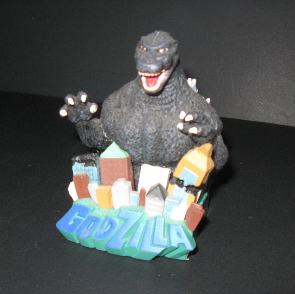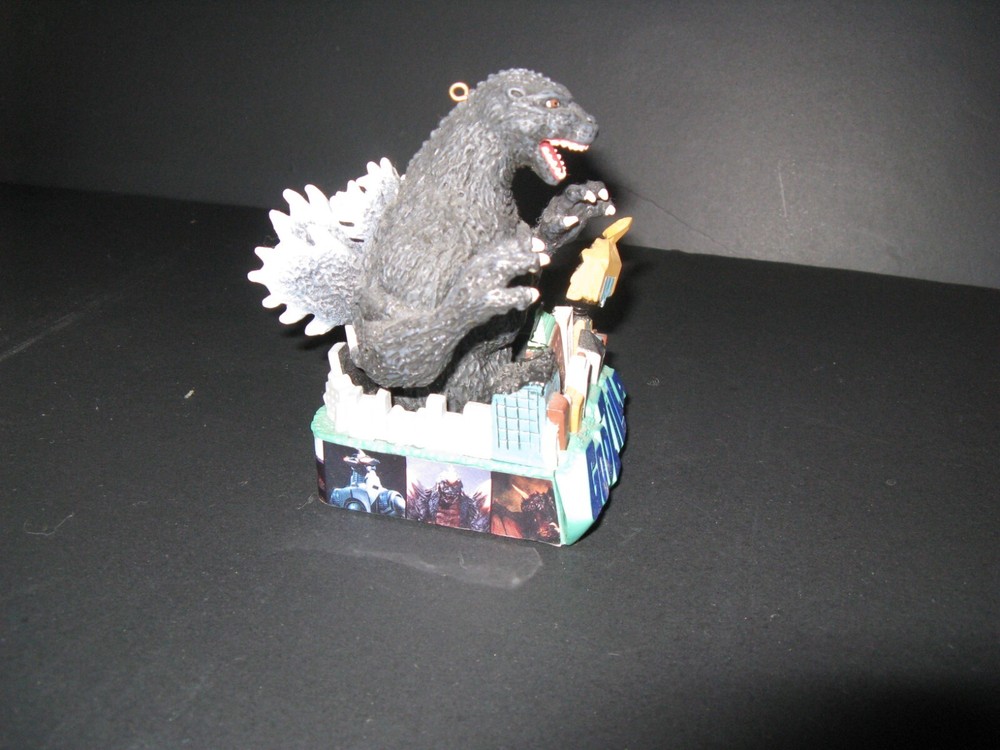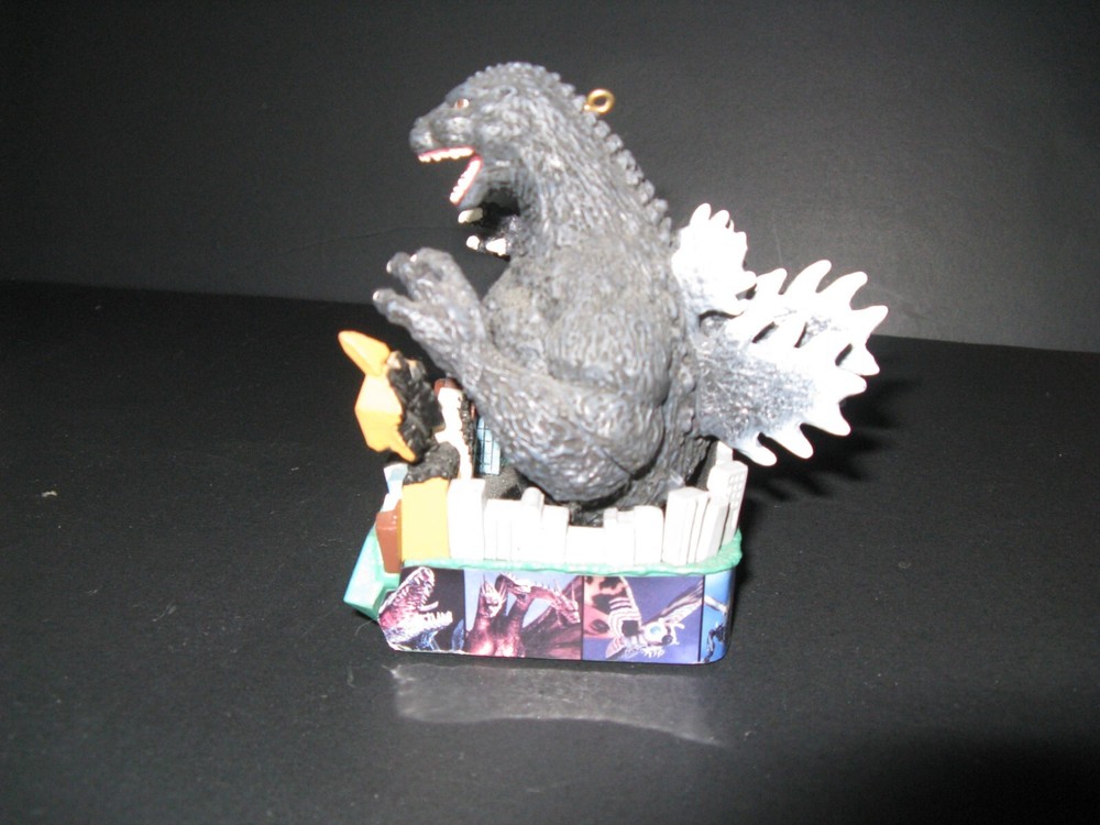 Up for sale is a Godzilla ornament with sound from Carlton Cards, I believe. Sorry for the bad photos, I'm just tinkering around with an old digital camera I just bought. The bottom says 2006 Toho Co. The video is "under review" by Ebay for 48 hours. The Godzilla figure is attached to springs and can be moved around but not move on its own.... or can it?
