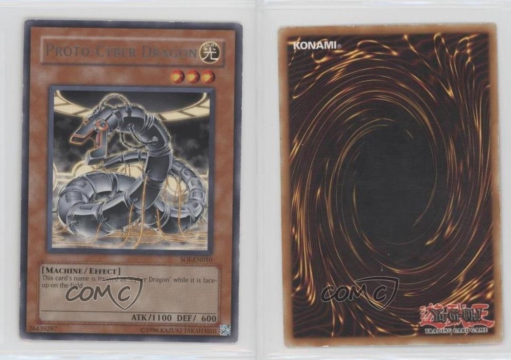 2006 Yu-Gi-Oh! - Shadow of Infinity - [Base] - 1st Edition #SOI-EN010 Proto-Cyber Dragon COMC Item: 122854224 - YuGiOh Card - Featuring Proto-Cyber Dragon Search for more: 2006 Yu-Gi-Oh! - Shadow of Infinity Search for more: 2006 Yu-Gi-Oh! - Shadow of Infinity - [Base] - 1st Edition View all of our Listings Auctions Buy It Now About Us Located in the beautiful Pacific Northwest, COMC (Check Out My Cards) is the world's largest consignment service for trading card singles. More than 10,000 people have used our consignment service to list over 50 million trading cards. Find out how we can help you consign your items on eBay by contacting us through eBay messaging. COMC -- "The Safe & Easy Way to Buy & Sell" Raw Condition for Modern Cards Unless otherwise noted, raw modern cards are listed in Near Mint-Mint condition or better. A NM-MT card appears to be Mint at first glance, but upon closer inspection, may exhibit some of the following: minor print defects (e.g. roller marks, print line, dimple), minor scratches, slight edge wear, and slight corner wear. Centering is clearly visible in the images provided and does not factor into our condition assessment. Raw Condition for Vintage Cards Unless otherwise noted, raw vintage cards are listed in Excellent condition or better. An EX card may exhibit some of the following: minor rounding of corners, surface wear, print defects, light scratches, and slight edge wear/chipping. Centering is clearly visible in the images provided and does not factor into our condition assessment. Domestic Shipping Combined shipping for multiple items is available. To receive combined shipping, please ensure all desired items are in your eBay shopping cart before proceeding to checkout. eBay limits orders to 40 items per order. We automatically combine multiple orders placed on the same day. If you place multiple orders on the same day, please contact us to request a refund of applicable shipping costs. Signature confirmation may be required on invoices over $400. All cards are protected and shipped securely. International Shipping COMC offers eBay's International Shipping (EIS) for international orders under $2,500* (see country exceptions below). All duties and import fees are paid at checkout; in the rare event that there are additional import fees upon delivery, these are borne by the buyer. EIS packages route through a shipping hub in Erlanger, KY before shipping to their final destination. Please note that EIS does not allow for combined shipments. The shipping rates are determined by eBay and cannot be adjusted. *Maximum sale price exceptions: Colombia, Kuwait ($2,000); Taiwan ($1,539); Chile, Costa Rica, Guatemala, Honduras, Trinidad and Tobago ($1,000); Antigua and Barbuda, Aruba, Belize, Dominica, Grenada, Philippines, Saint Kitts and Nevis, Saint Lucia, Montserrat, Turks and Caicos Islands ($500); Dominican Republic, El Salvador ($200). Please request a shipping quote through eBay messaging for orders that exceed the maximum sale price supported by eBay's International Shipping. You will be responsible for all duties and import fees for international orders shipped outside the EIS. All cards are protected and shipped securely. Payment COMC does not accept offers on our cards through our eBay storefront. COMC utilizes eBay’s managed payments system. If you are experiencing difficulties making a payment, please contact eBay for assistance. Return Policy Returns are only accepted on the rare occasion the item is not as described. If you are making a return, please initiate the return process through eBay so a mailing label can be provided for you. Prior to listing, our expert team carefully assessed this item to represent it accurately. Please review the description and high-definition images prior to purchasing to ensure this item meets your satisfaction. We welcome you to contact us if you have further questions about this item. Trust and Integrity COMC carefully assesses each item consigned to us to prevent fraudulent items from entering the marketplace. If you believe an item offered on COMC may be fraudulent, please contact us with details so we can investigate the issue. Items we determine are outside our supported items policy may be removed. Last Modified: 6/15/2025 9:20:26 AM PDT