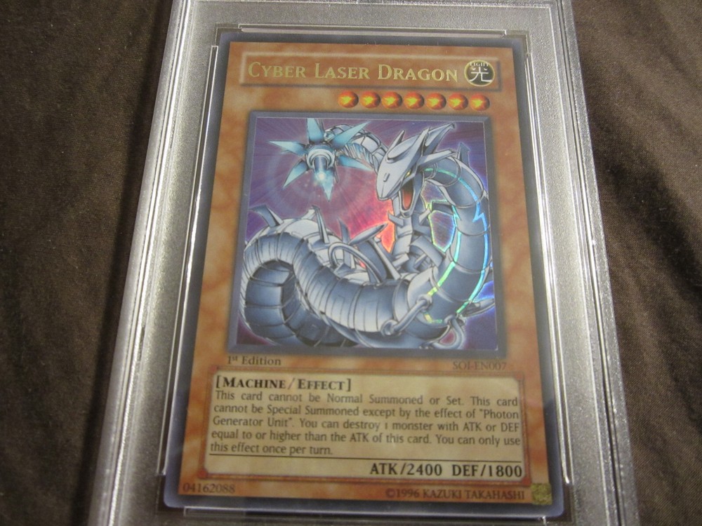 You are bidding on a 2006 Yu-Gi-Oh! Shadow of Infinity ultra rare Cyber Laser Dragon 1st edition card SOI-007. This card has been graded gem mint 10 by PSA. High bidder to pay by paypal only. Free shipping. Please email me with questions or for additional photos. Good Luck! Please note: I only ship to confirmed US residential addresses or internationally through the ebay international shipping program. I do not ship to US addresses that then ship international. If you do not have a confirmed US residential address, I have the right to cancel your order. Thanks.