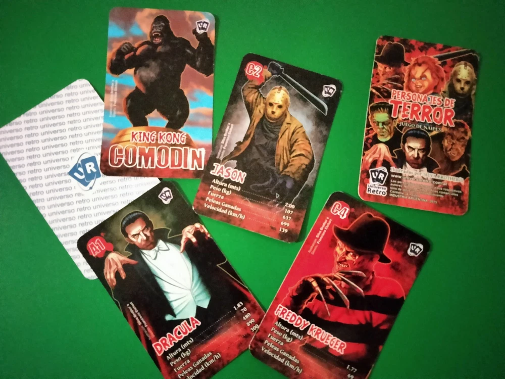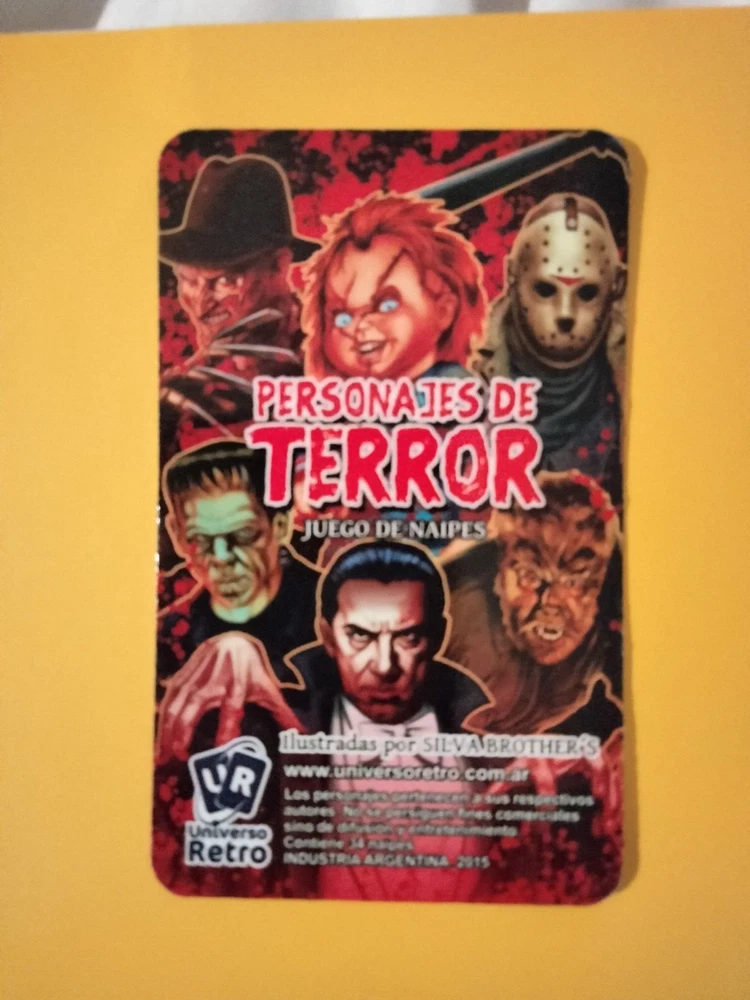 Universo Retro PERSONAJES de HORROR Juego de Naipes (card game) Argentina 2022. Rare Spanish language cards are pack fresh (opened by me) and are slightly different than standard US dimensions. Size 58mm. width x 93mm. height. Choose your favorite! Cards totaling under $20 will be sent eBay Standard Shipping. Orders Totaling over $20 USPS Ground. FREE SHIPPING Thank you for your interest.