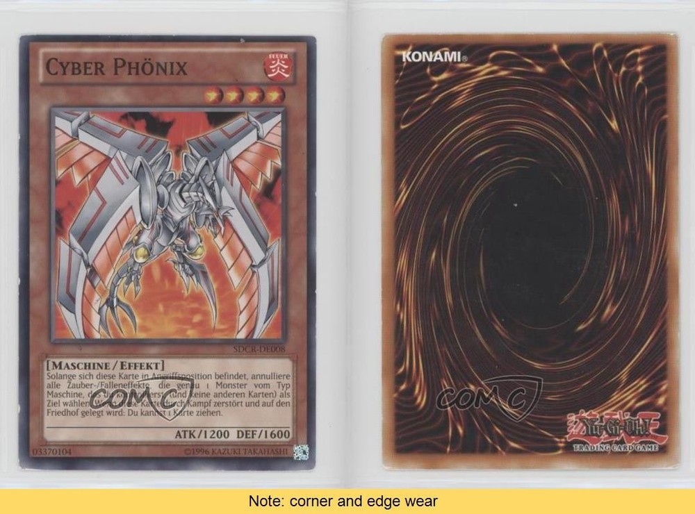 2014 Yu-Gi-Oh! Cyber Dragon Revolution - Structure Deck [Base] - German Unlimited #SDCR-DE008 Cyber Phoenix COMC Item: 91817916 CONDITION NOTE: corner and edge wear - YuGiOh Card - Featuring Cyber Phoenix Search for more: 2014 Yu-Gi-Oh! Cyber Dragon Revolution Search for more: 2014 Yu-Gi-Oh! Cyber Dragon Revolution - Structure Deck [Base] - German Unlimited View all of our Listings Auctions Buy It Now About Us Located in the beautiful Pacific Northwest, COMC (Check Out My Cards) is the world's largest consignment service for trading card singles. More than 10,000 people have used our consignment service to list over 50 million trading cards. Find out how we can help you consign your items on eBay by contacting us through eBay messaging. COMC -- "The Safe & Easy Way to Buy & Sell" Raw Condition for Modern Cards Unless otherwise noted, raw modern cards are listed in Near Mint-Mint condition or better. A NM-MT card appears to be Mint at first glance, but upon closer inspection, may exhibit some of the following: minor print defects (e.g. roller marks, print line, dimple), minor scratches, slight edge wear, and slight corner wear. Centering is clearly visible in the images provided and does not factor into our condition assessment. Raw Condition for Vintage Cards Unless otherwise noted, raw vintage cards are listed in Excellent condition or better. An EX card may exhibit some of the following: minor rounding of corners, surface wear, print defects, light scratches, and slight edge wear/chipping. Centering is clearly visible in the images provided and does not factor into our condition assessment. Domestic Shipping Combined shipping for multiple items is available. To receive combined shipping, please ensure all desired items are in your eBay shopping cart before proceeding to checkout. eBay limits orders to 40 items per order. We automatically combine multiple orders placed on the same day. If you place multiple orders on the same day, please contact us to request a refund of applicable shipping costs. Signature confirmation may be required on invoices over $400. All cards are protected and shipped securely. International Shipping COMC offers eBay's International Shipping (EIS) for international orders under $2,500* (see country exceptions below). All duties and import fees are paid at checkout; in the rare event that there are additional import fees upon delivery, these are borne by the buyer. EIS packages route through a shipping hub in Erlanger, KY before shipping to their final destination. Please note that EIS does not allow for combined shipments. The shipping rates are determined by eBay and cannot be adjusted. *Maximum sale price exceptions: Colombia, Kuwait ($2,000); Taiwan ($1,539); Chile, Costa Rica, Guatemala, Honduras, Trinidad and Tobago ($1,000); Antigua and Barbuda, Aruba, Belize, Dominica, Grenada, Philippines, Saint Kitts and Nevis, Saint Lucia, Montserrat, Turks and Caicos Islands ($500); Dominican Republic, El Salvador ($200). Please request a shipping quote through eBay messaging for orders that exceed the maximum sale price supported by eBay's International Shipping. You will be responsible for all duties and import fees for international orders shipped outside the EIS. All cards are protected and shipped securely. Payment COMC does not accept offers on our cards through our eBay storefront. COMC utilizes eBay’s managed payments system. If you are experiencing difficulties making a payment, please contact eBay for assistance. Return Policy Returns are only accepted on the rare occasion the item is not as described. If you are making a return, please initiate the return process through eBay so a mailing label can be provided for you. Prior to listing, our expert team carefully assessed this item to represent it accurately. Please review the description and high-definition images prior to purchasing to ensure this item meets your satisfaction. We welcome you to contact us if you have further questions about this item. Trust and Integrity COMC carefully assesses each item consigned to us to prevent fraudulent items from entering the marketplace. If you believe an item offered on COMC may be fraudulent, please contact us with details so we can investigate the issue. Items we determine are outside our supported items policy may be removed. Last Modified: 7/23/2025 9:33:21 AM PDT