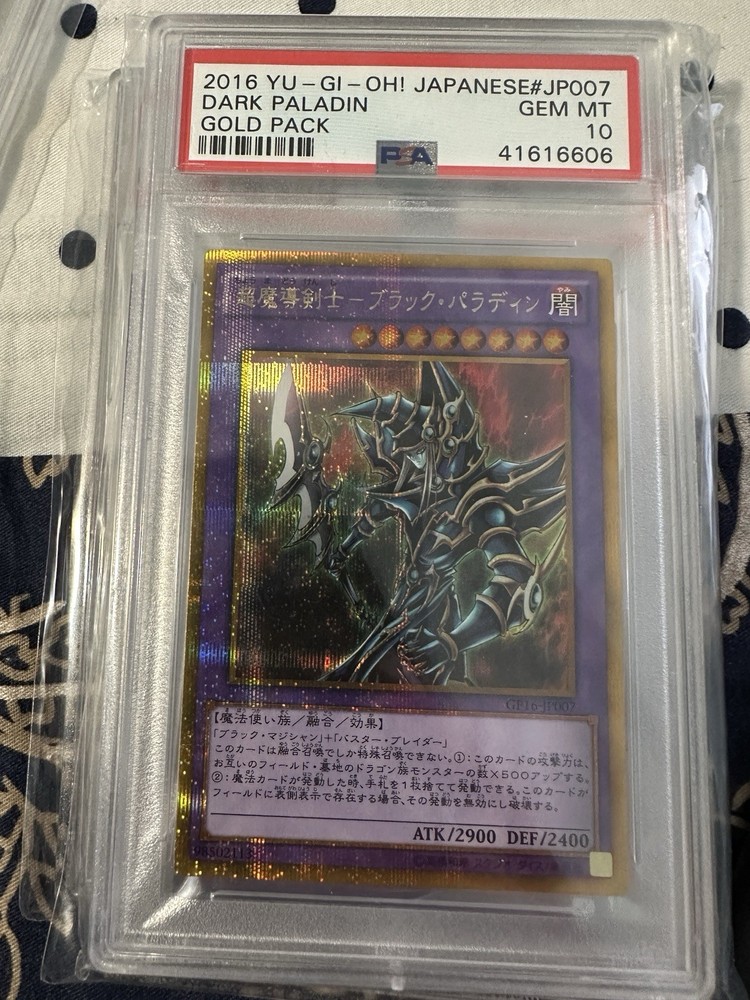 The 2016 YUGIOH JPN Dark Paladin Gold Pack #JP007 PSA 10 is a highly sought-after collectible card from the Yu-Gi-Oh! TCG. This vintage card features the Dark Paladin character in Japanese language, with a gold rarity and holo finish. Graded a perfect 10 by PSA, this full art promo card is a valuable addition to any collector's deck. Made by Konami in Japan, this card is a must-have for fans of the game looking for rare and unique cards to enhance their gameplay experience.