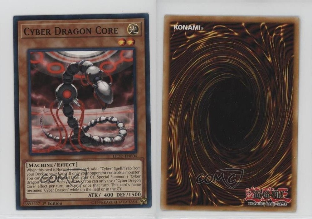 2017 Yu-Gi-Oh! Legendary Dragon Decks - [Base] - 1st Edition #LEDD-ENB04 Cyber Dragon Core COMC Item: 229570857 - YuGiOh Card - Featuring Cyber Dragon Core Search for more: 2017 Yu-Gi-Oh! Legendary Dragon Decks Search for more: 2017 Yu-Gi-Oh! Legendary Dragon Decks - [Base] - 1st Edition View all of our Listings Auctions Buy It Now About Us Located in the beautiful Pacific Northwest, COMC (Check Out My Cards) is the world's largest consignment service for trading card singles. More than 10,000 people have used our consignment service to list over 50 million trading cards. Find out how we can help you consign your items on eBay by contacting us through eBay messaging. COMC -- "The Safe & Easy Way to Buy & Sell" Raw Condition for Modern Cards Unless otherwise noted, raw modern cards are listed in Near Mint-Mint condition or better. A NM-MT card appears to be Mint at first glance, but upon closer inspection, may exhibit some of the following: minor print defects (e.g. roller marks, print line, dimple), minor scratches, slight edge wear, and slight corner wear. Centering is clearly visible in the images provided and does not factor into our condition assessment. Raw Condition for Vintage Cards Unless otherwise noted, raw vintage cards are listed in Excellent condition or better. An EX card may exhibit some of the following: minor rounding of corners, surface wear, print defects, light scratches, and slight edge wear/chipping. Centering is clearly visible in the images provided and does not factor into our condition assessment. Domestic Shipping Combined shipping for multiple items is available. To receive combined shipping, please ensure all desired items are in your eBay shopping cart before proceeding to checkout. eBay limits orders to 40 items per order. We automatically combine multiple orders placed on the same day. If you place multiple orders on the same day, please contact us to request a refund of applicable shipping costs. Signature confirmation may be required on invoices over $400. All cards are protected and shipped securely. International Shipping COMC offers eBay's International Shipping (EIS) for international orders under $2,500* (see country exceptions below). All duties and import fees are paid at checkout; in the rare event that there are additional import fees upon delivery, these are borne by the buyer. EIS packages route through a shipping hub in Erlanger, KY before shipping to their final destination. Please note that EIS does not allow for combined shipments. The shipping rates are determined by eBay and cannot be adjusted. *Maximum sale price exceptions: Colombia, Kuwait ($2,000); Taiwan ($1,539); Chile, Costa Rica, Guatemala, Honduras, Trinidad and Tobago ($1,000); Antigua and Barbuda, Aruba, Belize, Dominica, Grenada, Philippines, Saint Kitts and Nevis, Saint Lucia, Montserrat, Turks and Caicos Islands ($500); Dominican Republic, El Salvador ($200). Please request a shipping quote through eBay messaging for orders that exceed the maximum sale price supported by eBay's International Shipping. You will be responsible for all duties and import fees for international orders shipped outside the EIS. All cards are protected and shipped securely. Payment COMC does not accept offers on our cards through our eBay storefront. COMC utilizes eBay’s managed payments system. If you are experiencing difficulties making a payment, please contact eBay for assistance. Return Policy Returns are only accepted on the rare occasion the item is not as described. If you are making a return, please initiate the return process through eBay so a mailing label can be provided for you. Prior to listing, our expert team carefully assessed this item to represent it accurately. Please review the description and high-definition images prior to purchasing to ensure this item meets your satisfaction. We welcome you to contact us if you have further questions about this item. Trust and Integrity COMC carefully assesses each item consigned to us to prevent fraudulent items from entering the marketplace. If you believe an item offered on COMC may be fraudulent, please contact us with details so we can investigate the issue. Items we determine are outside our supported items policy may be removed. Last Modified: 6/11/2025 7:04:17 PM PDT