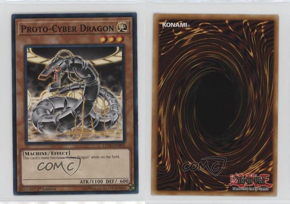 2017 Yu-Gi-Oh! Legendary Dragon Decks - [Base] - 1st Edition #LEDD-ENB05 Proto-Cyber Dragon COMC Item: 229572181 - YuGiOh Card - Featuring Proto-Cyber Dragon Search for more: 2017 Yu-Gi-Oh! Legendary Dragon Decks Search for more: 2017 Yu-Gi-Oh! Legendary Dragon Decks - [Base] - 1st Edition View all of our Listings Auctions Buy It Now About Us Located in the beautiful Pacific Northwest, COMC (Check Out My Cards) is the world's largest consignment service for trading card singles. More than 10,000 people have used our consignment service to list over 50 million trading cards. Find out how we can help you consign your items on eBay by contacting us through eBay messaging. COMC -- "The Safe & Easy Way to Buy & Sell" Raw Condition for Modern Cards Unless otherwise noted, raw modern cards are listed in Near Mint-Mint condition or better. A NM-MT card appears to be Mint at first glance, but upon closer inspection, may exhibit some of the following: minor print defects (e.g. roller marks, print line, dimple), minor scratches, slight edge wear, and slight corner wear. Centering is clearly visible in the images provided and does not factor into our condition assessment. Raw Condition for Vintage Cards Unless otherwise noted, raw vintage cards are listed in Excellent condition or better. An EX card may exhibit some of the following: minor rounding of corners, surface wear, print defects, light scratches, and slight edge wear/chipping. Centering is clearly visible in the images provided and does not factor into our condition assessment. Domestic Shipping Combined shipping for multiple items is available. To receive combined shipping, please ensure all desired items are in your eBay shopping cart before proceeding to checkout. eBay limits orders to 40 items per order. We automatically combine multiple orders placed on the same day. If you place multiple orders on the same day, please contact us to request a refund of applicable shipping costs. Signature confirmation may be required on invoices over $400. All cards are protected and shipped securely. International Shipping COMC offers eBay's International Shipping (EIS) for international orders under $2,500* (see country exceptions below). All duties and import fees are paid at checkout; in the rare event that there are additional import fees upon delivery, these are borne by the buyer. EIS packages route through a shipping hub in Erlanger, KY before shipping to their final destination. Please note that EIS does not allow for combined shipments. The shipping rates are determined by eBay and cannot be adjusted. *Maximum sale price exceptions: Colombia, Kuwait ($2,000); Taiwan ($1,539); Chile, Costa Rica, Guatemala, Honduras, Trinidad and Tobago ($1,000); Antigua and Barbuda, Aruba, Belize, Dominica, Grenada, Philippines, Saint Kitts and Nevis, Saint Lucia, Montserrat, Turks and Caicos Islands ($500); Dominican Republic, El Salvador ($200). Please request a shipping quote through eBay messaging for orders that exceed the maximum sale price supported by eBay's International Shipping. You will be responsible for all duties and import fees for international orders shipped outside the EIS. All cards are protected and shipped securely. Payment COMC does not accept offers on our cards through our eBay storefront. COMC utilizes eBay’s managed payments system. If you are experiencing difficulties making a payment, please contact eBay for assistance. Return Policy Returns are only accepted on the rare occasion the item is not as described. If you are making a return, please initiate the return process through eBay so a mailing label can be provided for you. Prior to listing, our expert team carefully assessed this item to represent it accurately. Please review the description and high-definition images prior to purchasing to ensure this item meets your satisfaction. We welcome you to contact us if you have further questions about this item. Trust and Integrity COMC carefully assesses each item consigned to us to prevent fraudulent items from entering the marketplace. If you believe an item offered on COMC may be fraudulent, please contact us with details so we can investigate the issue. Items we determine are outside our supported items policy may be removed. Last Modified: 6/11/2025 7:02:38 PM PDT