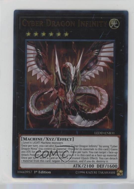 2017 Yu-Gi-Oh! Legendary Dragon Decks - [Base] - 1st Edition #LEDD-ENB31 UR - Cyber Dragon Infinity COMC Item: 218503972 - YuGiOh Card - Featuring Cyber Dragon Infinity Search for more: 2017 Yu-Gi-Oh! Legendary Dragon Decks Search for more: 2017 Yu-Gi-Oh! Legendary Dragon Decks - [Base] - 1st Edition View all of our Listings Auctions Buy It Now About Us Located in the beautiful Pacific Northwest, COMC (Check Out My Cards) is the world's largest consignment service for trading card singles. More than 10,000 people have used our consignment service to list over 50 million trading cards. Find out how we can help you consign your items on eBay by contacting us through eBay messaging. COMC -- "The Safe & Easy Way to Buy & Sell" Raw Condition for Modern Cards Unless otherwise noted, raw modern cards are listed in Near Mint-Mint condition or better. A NM-MT card appears to be Mint at first glance, but upon closer inspection, may exhibit some of the following: minor print defects (e.g. roller marks, print line, dimple), minor scratches, slight edge wear, and slight corner wear. Centering is clearly visible in the images provided and does not factor into our condition assessment. Raw Condition for Vintage Cards Unless otherwise noted, raw vintage cards are listed in Excellent condition or better. An EX card may exhibit some of the following: minor rounding of corners, surface wear, print defects, light scratches, and slight edge wear/chipping. Centering is clearly visible in the images provided and does not factor into our condition assessment. Domestic Shipping Combined shipping for multiple items is available. To receive combined shipping, please ensure all desired items are in your eBay shopping cart before proceeding to checkout. eBay limits orders to 40 items per order. We automatically combine multiple orders placed on the same day. If you place multiple orders on the same day, please contact us to request a refund of applicable shipping costs. Signature confirmation may be required on invoices over $400. All cards are protected and shipped securely. International Shipping COMC offers eBay's International Shipping (EIS) for international orders under $2,500* (see country exceptions below). All duties and import fees are paid at checkout; in the rare event that there are additional import fees upon delivery, these are borne by the buyer. EIS packages route through a shipping hub in Erlanger, KY before shipping to their final destination. Please note that EIS does not allow for combined shipments. The shipping rates are determined by eBay and cannot be adjusted. *Maximum sale price exceptions: Colombia, Kuwait ($2,000); Taiwan ($1,539); Chile, Costa Rica, Guatemala, Honduras, Trinidad and Tobago ($1,000); Antigua and Barbuda, Aruba, Belize, Dominica, Grenada, Philippines, Saint Kitts and Nevis, Saint Lucia, Montserrat, Turks and Caicos Islands ($500); Dominican Republic, El Salvador ($200). Please request a shipping quote through eBay messaging for orders that exceed the maximum sale price supported by eBay's International Shipping. You will be responsible for all duties and import fees for international orders shipped outside the EIS. All cards are protected and shipped securely. Payment COMC does not accept offers on our cards through our eBay storefront. COMC utilizes eBay’s managed payments system. If you are experiencing difficulties making a payment, please contact eBay for assistance. Return Policy Returns are only accepted on the rare occasion the item is not as described. If you are making a return, please initiate the return process through eBay so a mailing label can be provided for you. Prior to listing, our expert team carefully assessed this item to represent it accurately. Please review the description and high-definition images prior to purchasing to ensure this item meets your satisfaction. We welcome you to contact us if you have further questions about this item. Trust and Integrity COMC carefully assesses each item consigned to us to prevent fraudulent items from entering the marketplace. If you believe an item offered on COMC may be fraudulent, please contact us with details so we can investigate the issue. Items we determine are outside our supported items policy may be removed. Last Modified: 7/2/2025 4:14:27 PM PDT